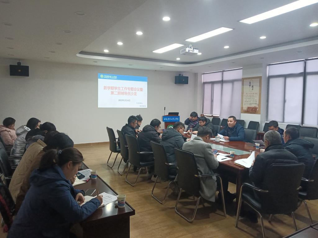 本网讯 2月16日下午,15vip太阳集团官网在学院二楼会议室召开新学期员工工作专题会议暨第二期辅导员沙龙。会议由公司党委副书记、副经理张国学主持,学院全体专兼职辅导员参加了本次会议。