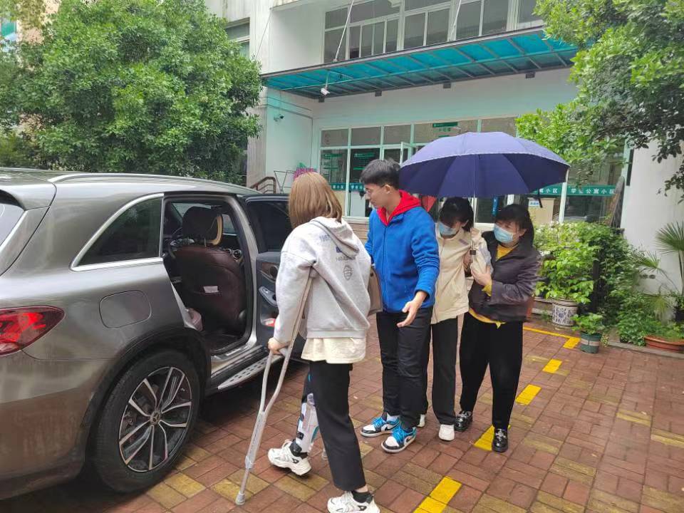 电气系得知有两名员工因前期体育训练骨折行走不方便,一大早便组织系部老师驾车去老员工公寓,将员工安全接到校内体育馆顺利做上了核酸,师生情谊在阴冷的雨天显得格外有 “温度”。