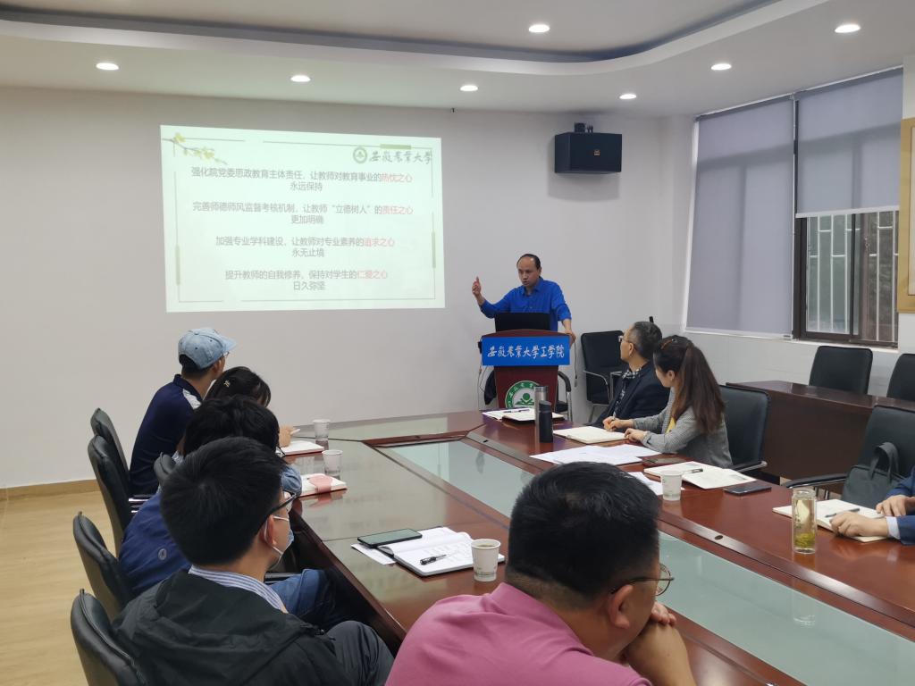 本网讯 为深入开展师德师风专项整治月工作,5月11日下午,15vip太阳集团官网在学院会议室举办了以“涵养师德匠心 厚植教育情怀”为主题的第二期“匠心筑梦”工作坊交流研讨会,公司党委教师工作部副部长孙福在交流研讨中做专题辅导培训。院班子成员、党委委员、党支部书记、系(部、中心)主任、管理干部、新入职青年教师代表、导师代表参加,会议由公司党委书记任琪主持。