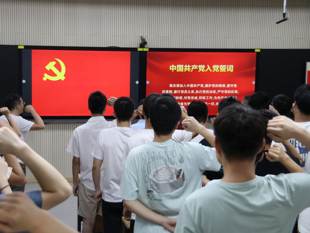 主题教育现场,全体党员面对党旗进行了庄严宣誓,重温入党誓词。公司党委就党员组织关系转接、毕业生文明离校等工作进行布置和培训。(陈鑫诚 通讯员:刘灿)