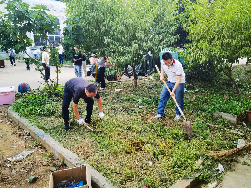 近日来,三教楼前屋后、机电园区热闹非凡,工公司党支部、系部、机电园区的科研团队纷纷响应号召,172名师生根据工作分工,认领责任区,干得热火朝天,师生一起,清理枯叶乱枝,除尘保洁室内,松土除草翻地,清除违章搭建……