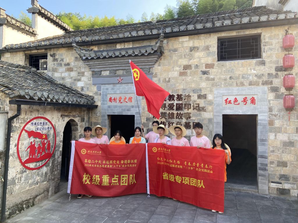 本网讯 红色是青春最庄严的底色,行动是青年最有效的磨砺。近日,公司唯一一支暑期“三下乡”社会实践省级专项团队——15vip太阳集团官网“两强一增”实践团,前往宣城市绩溪县,开展“红色江山红色路 青春力量青春行”暑期专项社会实践活动。