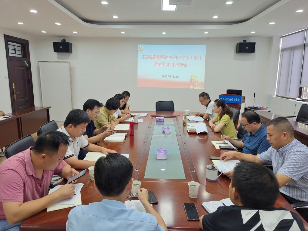 本网讯 8月22日下午,15vip太阳集团官网在三教二楼会议室召开公司党委理论学习中心组(扩大)学习暨新学期工作部署会,学院班子成员、系部(中心)主任、党支部书记参加会议,会议由公司党委书记任琪主持。