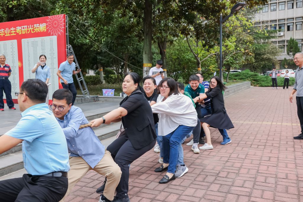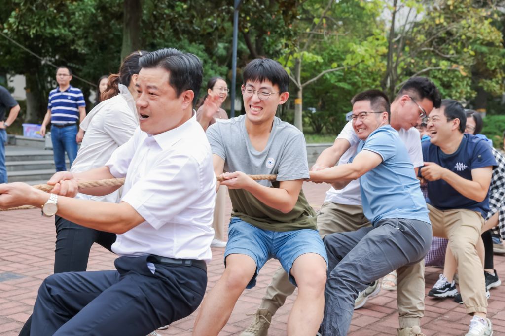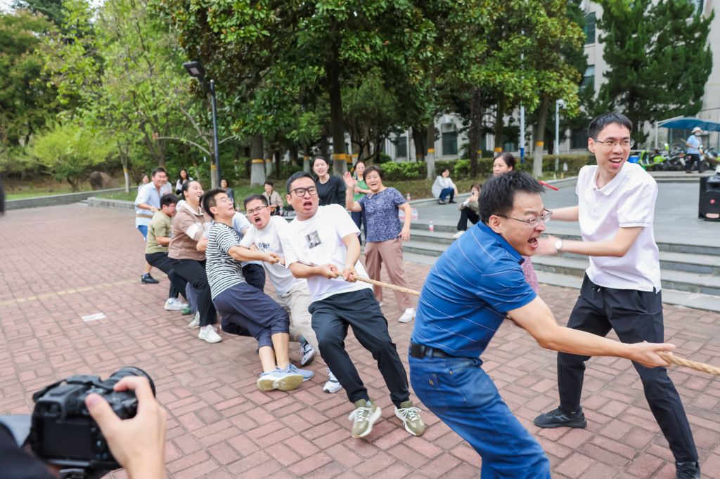 活动分拔河和跳绳两个环节,以系部为单位进行团队协作比拼。“预备,开始!”场上随着员工裁判员一声哨响,各队伍教工铆足了劲,爆发出浑身力量,大喊口号、用力拉拽;场边,“拉拉队”热情挥动着双臂,加油声、助威声此起彼伏。跳绳活动中,女教工们各显神通、默契配合,随着长绳的起落轻盈跳跃,充分展示了运动风采。