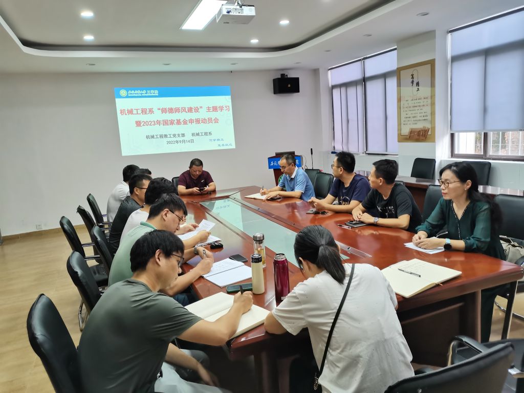 本网讯 9月14日下午,机械工程教工党支部召开了“师德师风建设”主题学习暨2023年国家基金申报动员会。副经理许良元、支部党员和机械工程系教师参与了本次活动。