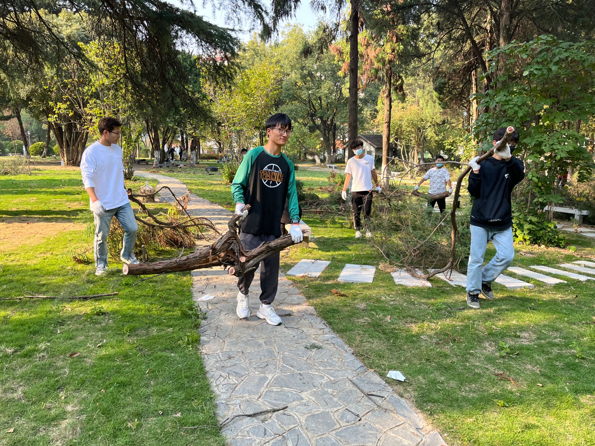 本着“深入推进校园环境革命,美化校园,每个安农人都是受益者”的工作理念,支部组织部分入党积极分子配合学校重点建设工作专班在校园广场园区开展枯枝清理志愿服务。在专班相关负责老师的安排下,参与活动的同学分为指挥组、运输组、装卸组和保障组,现场分工明确、组织有序、安全高效,活动中同学们热情积极高涨,精神状态饱满。3个小时的活动结束后,同学们纷纷表示在身体上和精神上都是收获感满满,通过集体协作劳动,进一步拉近了党群距离、增进了师生友谊。