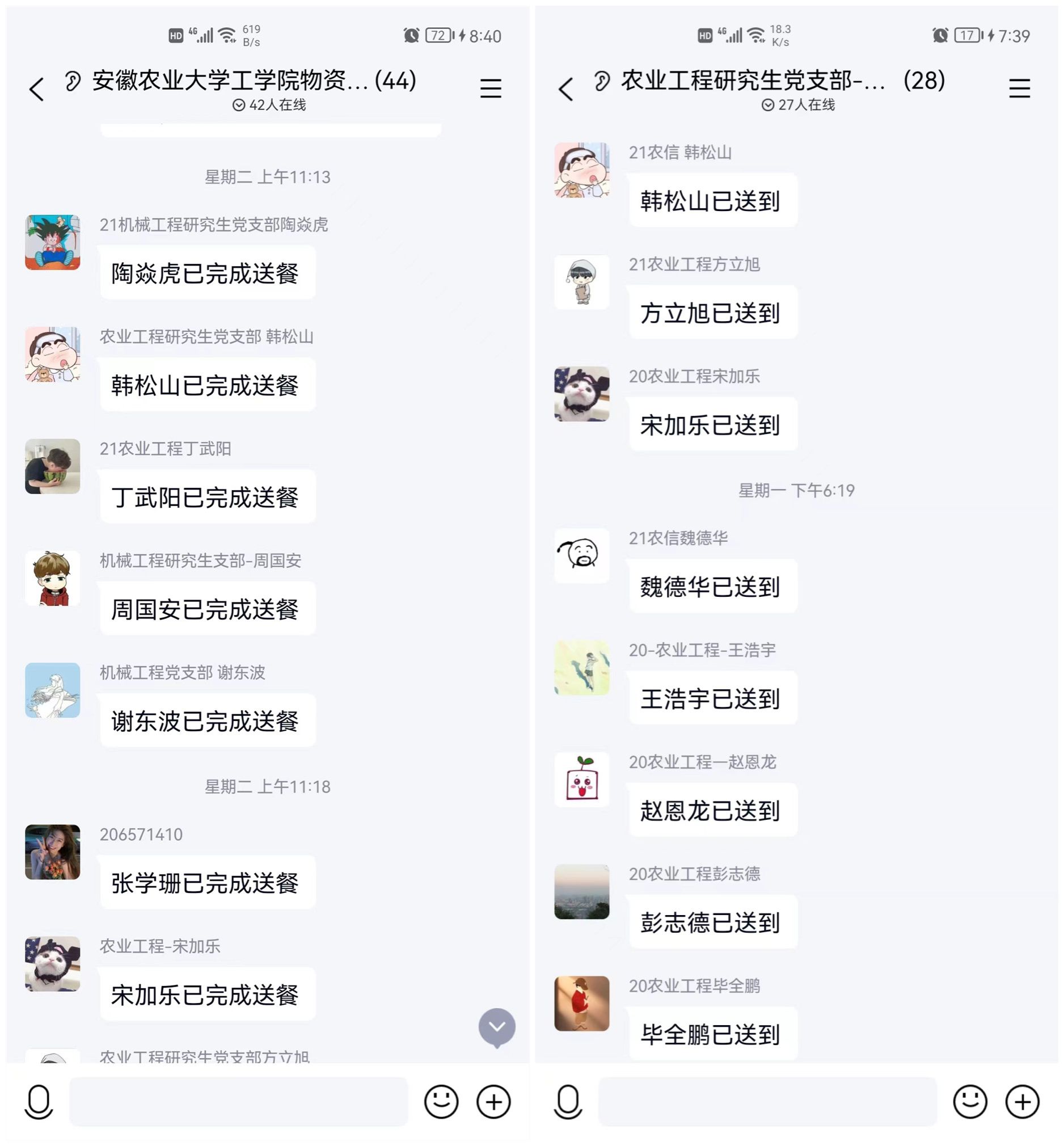 面对突如其来的疫情,10月中旬以来,农业工程研究生党支部全体党员积极参与物资运送、志愿服务、值班值守等工作中,践行入党承诺,争做先锋模范。(一审:李兆东 二审:刘灿 三审:任琪)