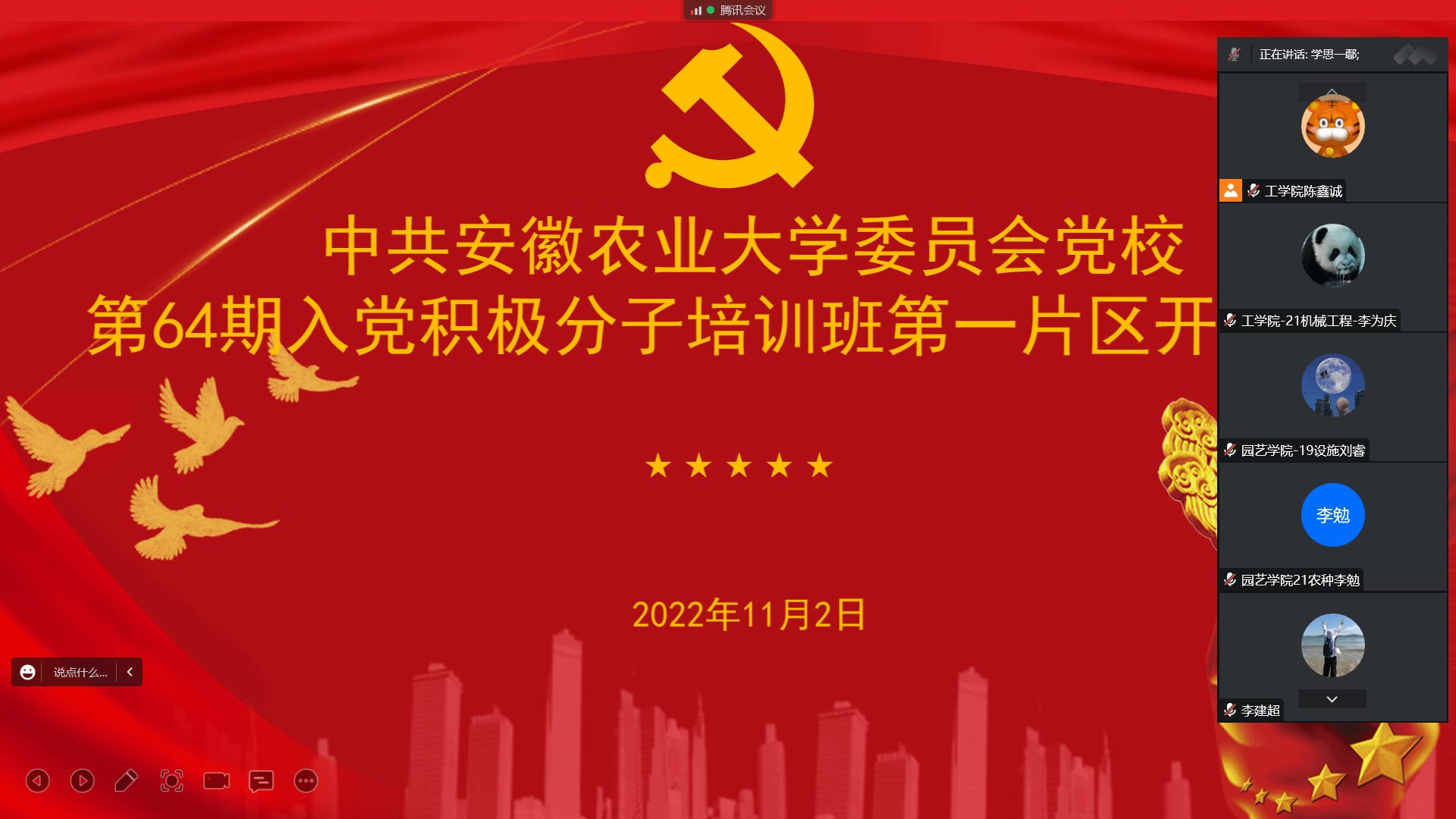 11月2日下午14:30,校第一片区分党校第64期入党积极分子培训班开班仪式顺利举行。工公司党委书记任琪,园艺公司党委副书记、纪委书记、副经理鄢高翔,林学与园林公司党委副书记、纪委书记、副经理夏利明出席开班式,第一片区全体党校学员和党课班主任参加了会议。会议由工公司党委副书记、纪委书记、副经理张国学同志主持。