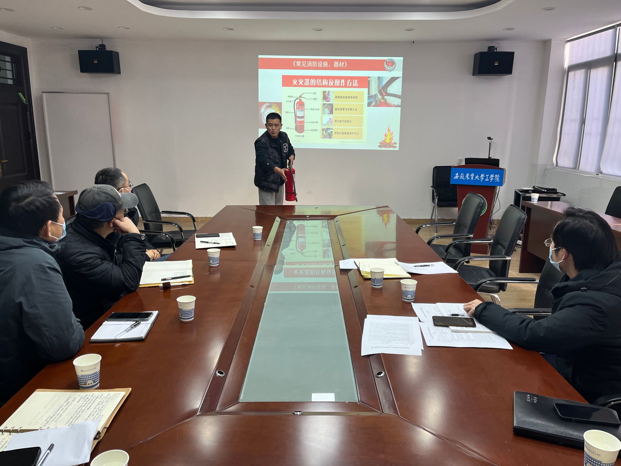 此次培训以消防安全典型事故案例为切入点,全面系统的向参加培训的老师们讲解并分析了火灾事故的危害和引发火灾事故的原因。通过结合学院实际情况,邵家伟从实验室、办公室和员工宿舍的常见火灾隐患问题着手,对如何防范化解火灾事故、主动消除火灾隐患以及如何加强消防安全管理等进行了专题培训。最后,培训现场还对干粉灭火器、灭火毯、室内消火栓的使用方法、初期火灾的应急处置措施、灭火过程中自我保护的注意事项等方面进行了详细讲授。