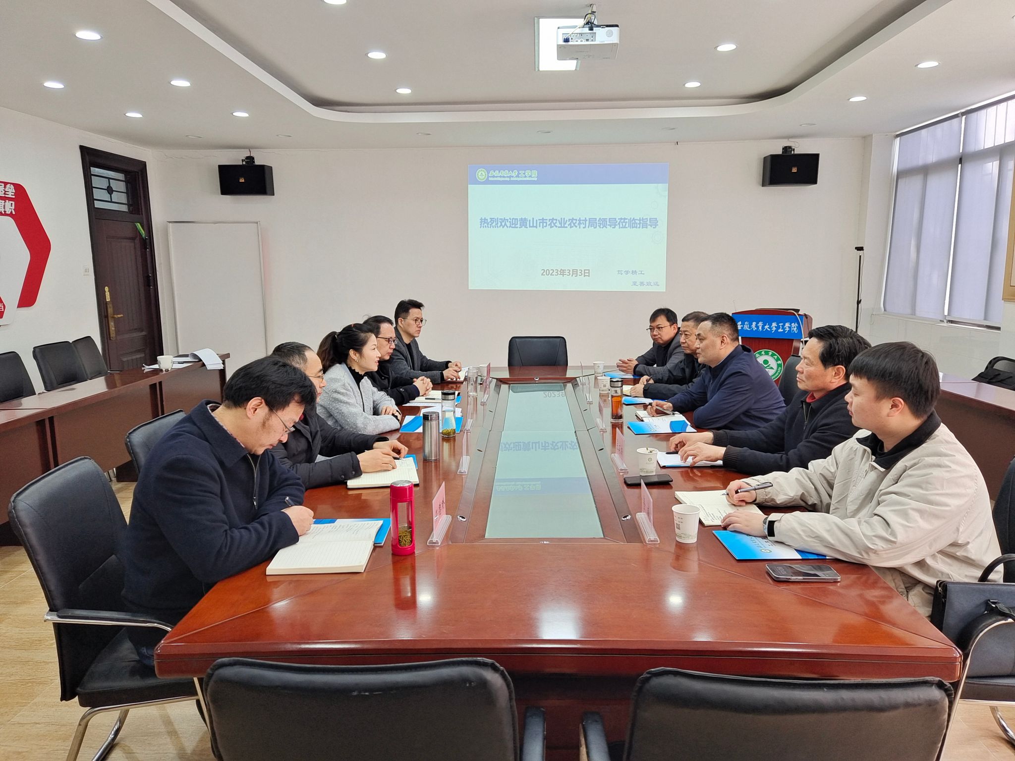 本网讯 3月3日上午,黄山市农业农村局党组成员、总农艺师詹洪亮一行来院调研交流。工公司党政领导、农业机械系部分教授代表热情接待了来访人员,并在学院门厅会议室进行了座谈交流。