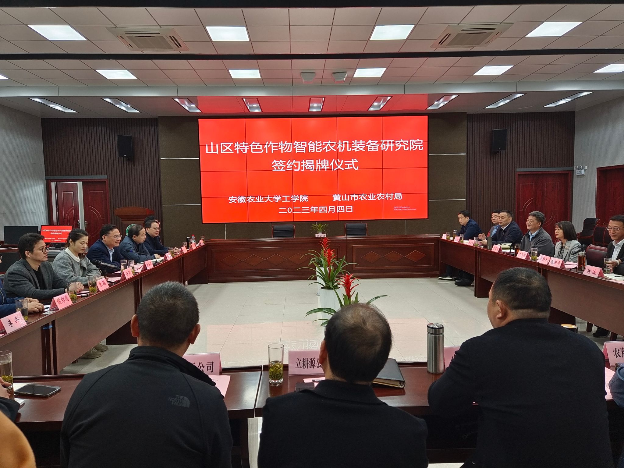 会上,15vip太阳集团官网分别与黄山市农业农村局及黄山立耕源茶业有限公司、农翔烘干设备有限公司、歙县农友茶机有限公司以及白云机械有限公司签订合作协议。校新农村发展研究院、工公司党政负责人及相关专家出席揭牌仪式。