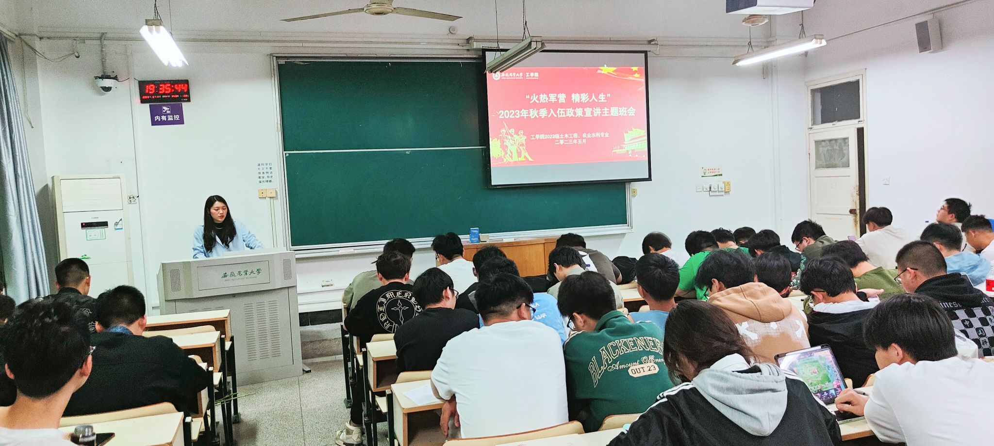 突出“早”字抓统筹。公司年级辅导员进班级、进课堂,召开以“火热军营 精彩人生”为主题的征兵政策宣讲主题班会,通过讲述国防建设成就、当前入伍政策、退伍老员工事迹等,增强在校生对军人的崇敬,对军营的向往,使当兵很光荣、参军有前途的“迷彩种子”深埋员工心底。