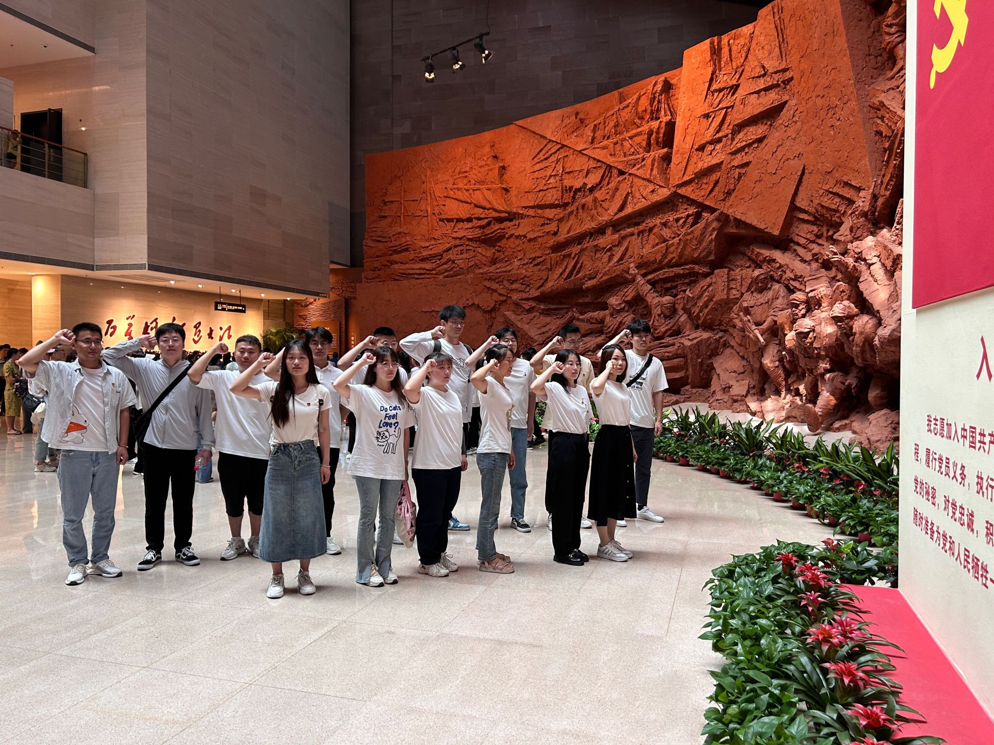 随后,跟随着讲解员的脚步,在场的党员们参观了战前形势、战役准备、突破江防等三大展厅,感受“百万雄师过大江”的气势恢宏,聆听革命先烈们的英勇事迹。深刻感悟渡江战役中团结一致、同舟共济、不畏艰险、勇于拼搏、坚忍不拔、敢于争先的先烈精神。支部副书记武家杰表示“一切为民者,则民向往之。”为中国人民谋幸福、为中华民族谋复兴,是中国共产党人不变的初心和使命。我们作为新一代青年党员要不忘初心牢记使命。