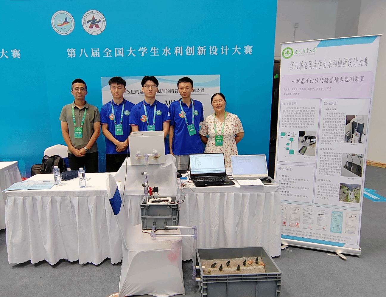 比赛中,各参赛学校代表队通过作品演示、分组答辩、答辩复赛等环节展开了激烈的角逐。刘晓丽老师指导的作品《一种改进的基于虹吸原理的暗管排水监测装置》获得一等奖(参赛员工:金大唐、王振懿、张俊卓、刘延浩、李沅珂)。