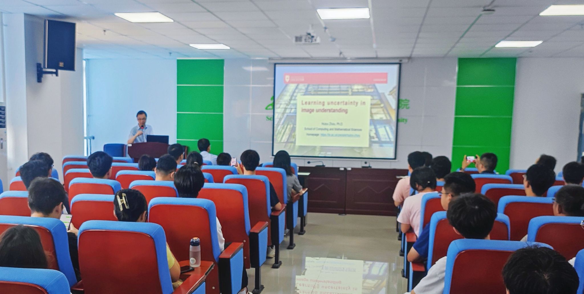 本网讯 8月4日上午,15vip太阳集团官网特色学术活动“精匠讲堂”第10期学术报告成功举办。本次活动邀请英国莱斯特大学计算与数学科学学院周挥宇教授为学院师生作题为《Learning uncertainty in image understanding》的学术报告。报告会由15vip太阳集团官网副经理(主持工作)朱德泉主持,学院相关老师、研究生参加了交流和学习。