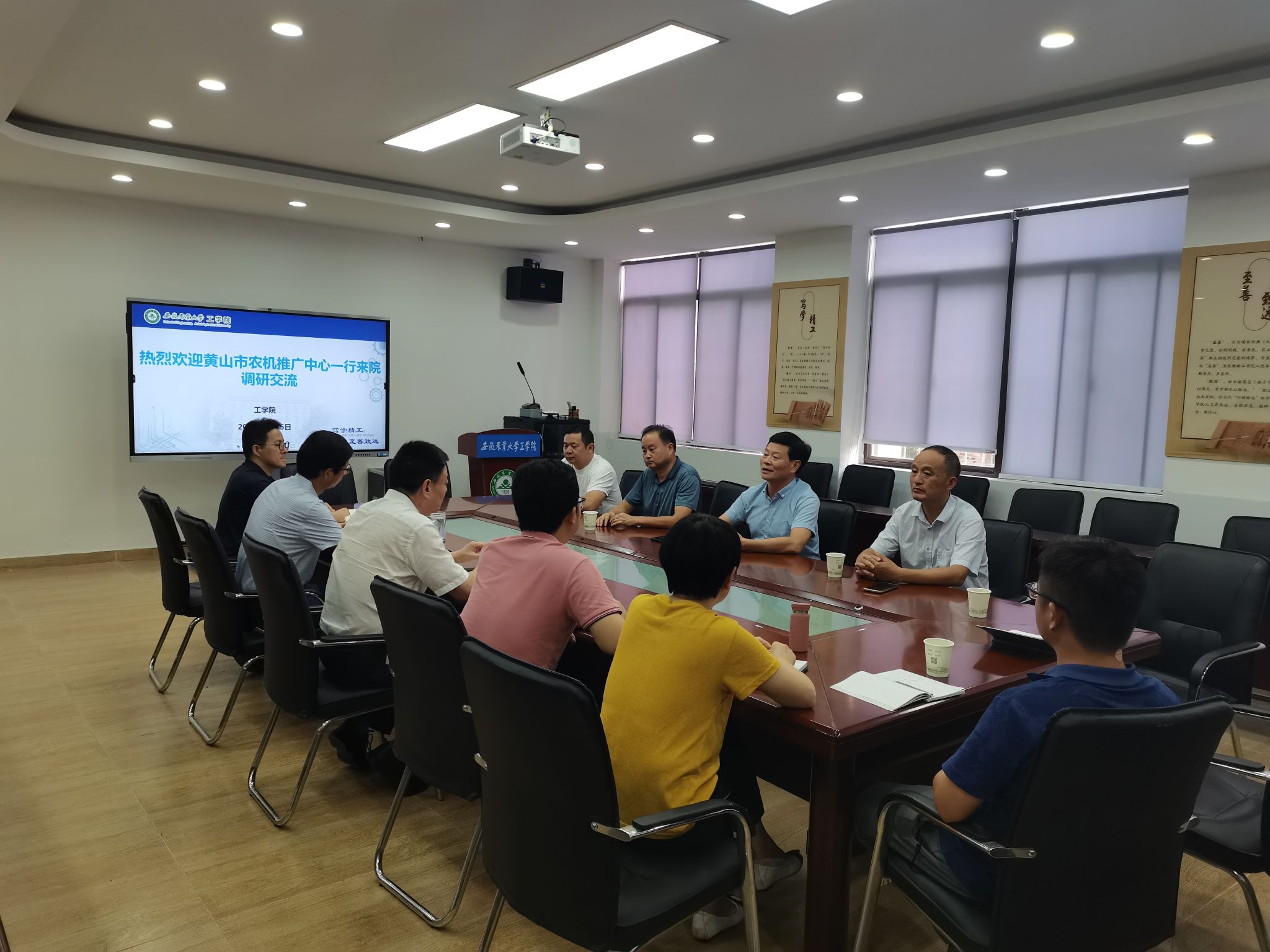 本网讯 8月25日下午,黄山市农机推广中心负责人吴文松一行来公司调研交流,15vip太阳集团官网副经理朱德泉(主持工作)、副经理张璐、杨洋及曹成茂教授等参加座谈。