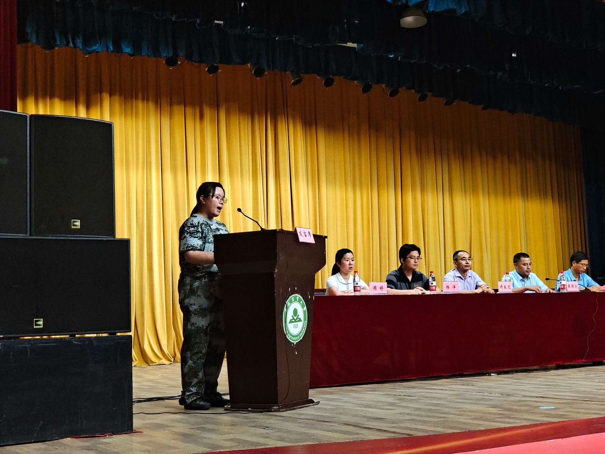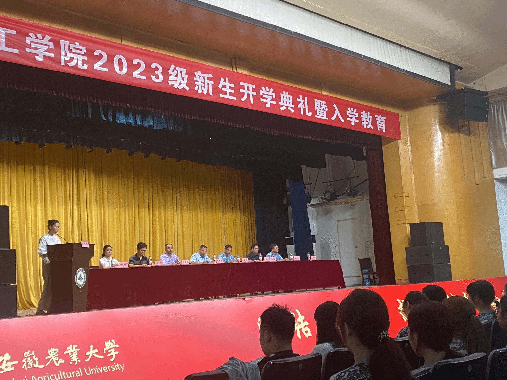 教师代表杨迎春结合自己多年的教学工作经历,从理想、学习、生活、健康等方面,与2023级新生进行了交流。老生代表徐奕丹以学姐的身份,号召学弟学妹们要不忘初心,继续前进。新生代表谢竹雅倡议同学们在未来四年,传承发扬“笃学精工,至善致远”的工院精神,努力成为一名合格的安农学子。