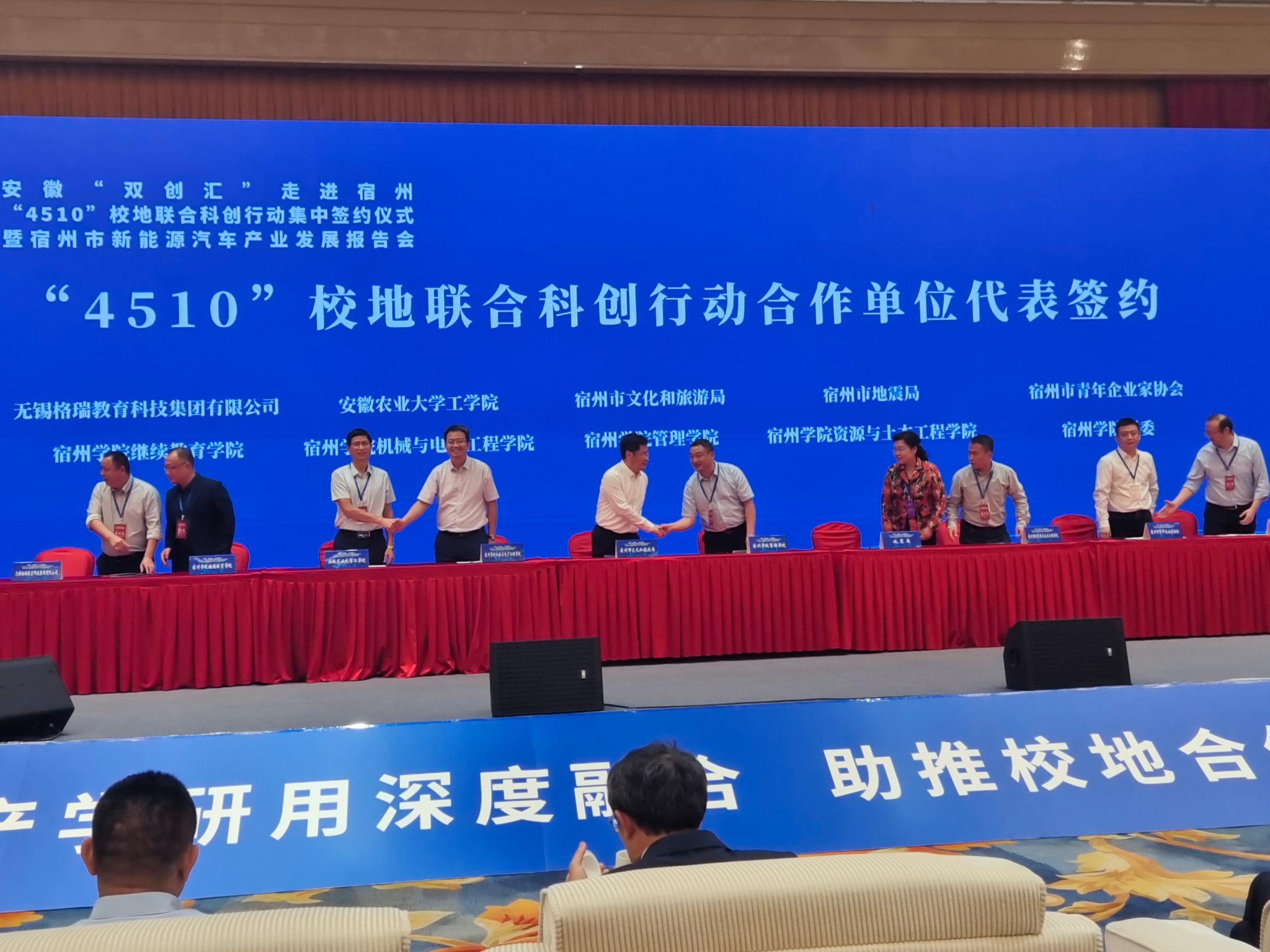 26日下午,15vip太阳集团官网副经理朱德泉带队参加了宿州市“4510”校地联合科创行动集中签约仪式,并代表15vip太阳集团官网与宿州学院机械与电子工程学院签订了战略合作协议。(一审:何仁婷 二审:刘灿 三审:朱德泉)