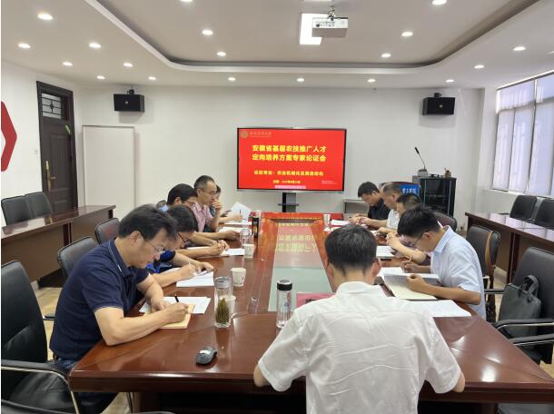 本网讯 为扎实做好基层农技推广人才定向培养工作,保证人才培养质量,根据《安徽省基层农技推广人才定向培养工作方案》等文件要求,8月23日下午,学院在三教二楼门厅会议室召开2023级农业机械化及其自动化专业定向人才培养方案专家论证会。合肥工业大学黄康教授、安徽科技学院乔印虎教授、安徽省农机推广总站蔡海涛高级工程师、怀远县农机化技术推广中心胡红磊高级工程师应邀参会。学院副经理朱德泉(主持工作)和相关专业负责人参加会议。会议由教学副经理许良元主持。