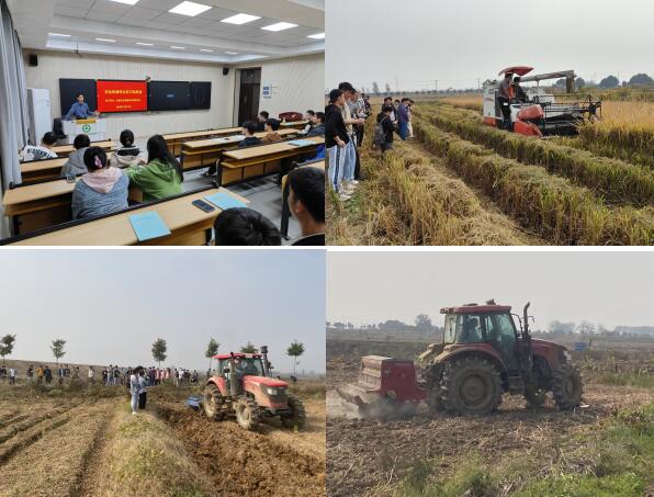 10月28日,实习师生赴安徽汇农达农业合作社、罗塘乡壁城村村集体合作社农场进行实习,实习期间指导教师对机具结构和工作原理进行了讲解。在专业机手的指导下,同学们进行了联合收割机水稻收获、犁耙一体机深翻碎土、小麦旋耕施肥播种机播种的实操。作业后进行了试验数据测定并对作业质量进行评价。