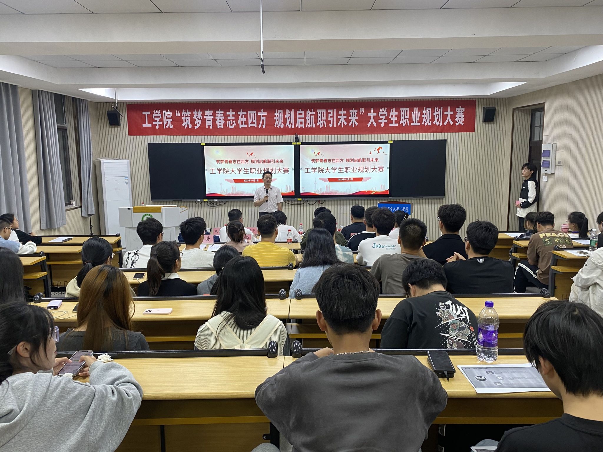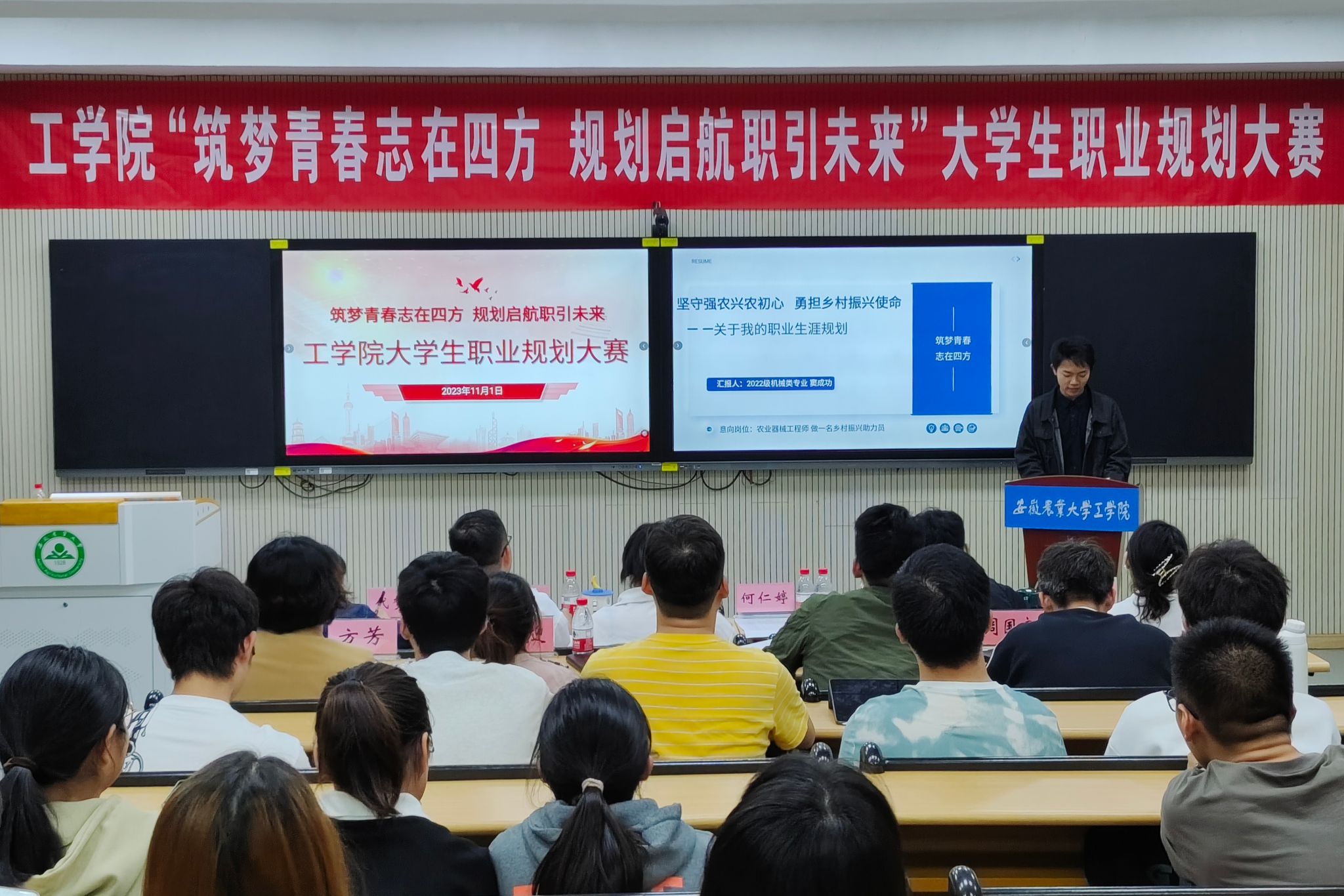 本次比赛学院高度重视,经过前期广泛宣传动员、辅导员精心组织,经班级初赛选拔,最终有21名选手脱颖而出进入学院决赛。比赛现场,选手们从容自信,立足当下,憧憬未来,围绕自我认知、职业认知、职业目标路径设计、规划与实施计划、评估与备选方案等方面进行陈述,展现了水利工程师、电气工程师、建筑工程师、机械设计师等职业规划,展示了学院学子高远的理想和过硬的素质。