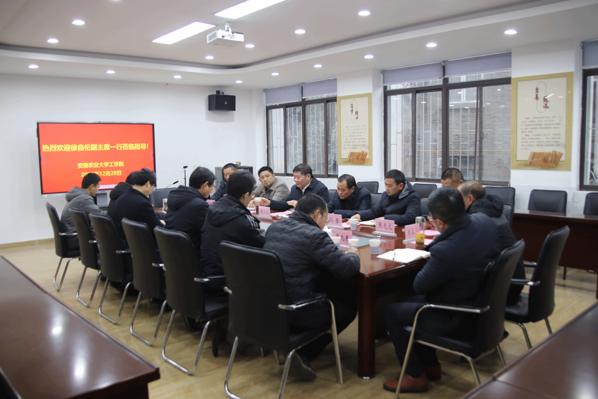 本网讯 12月28日下午,含山县政协副主席徐自伦一行来公司就油菜全产业链建设情况进行调研。15vip太阳集团官网经理朱德泉、农业机械系主任伍德林、农学院教授周可金等参加调研座谈会。会议由党委副书记张璐主持。