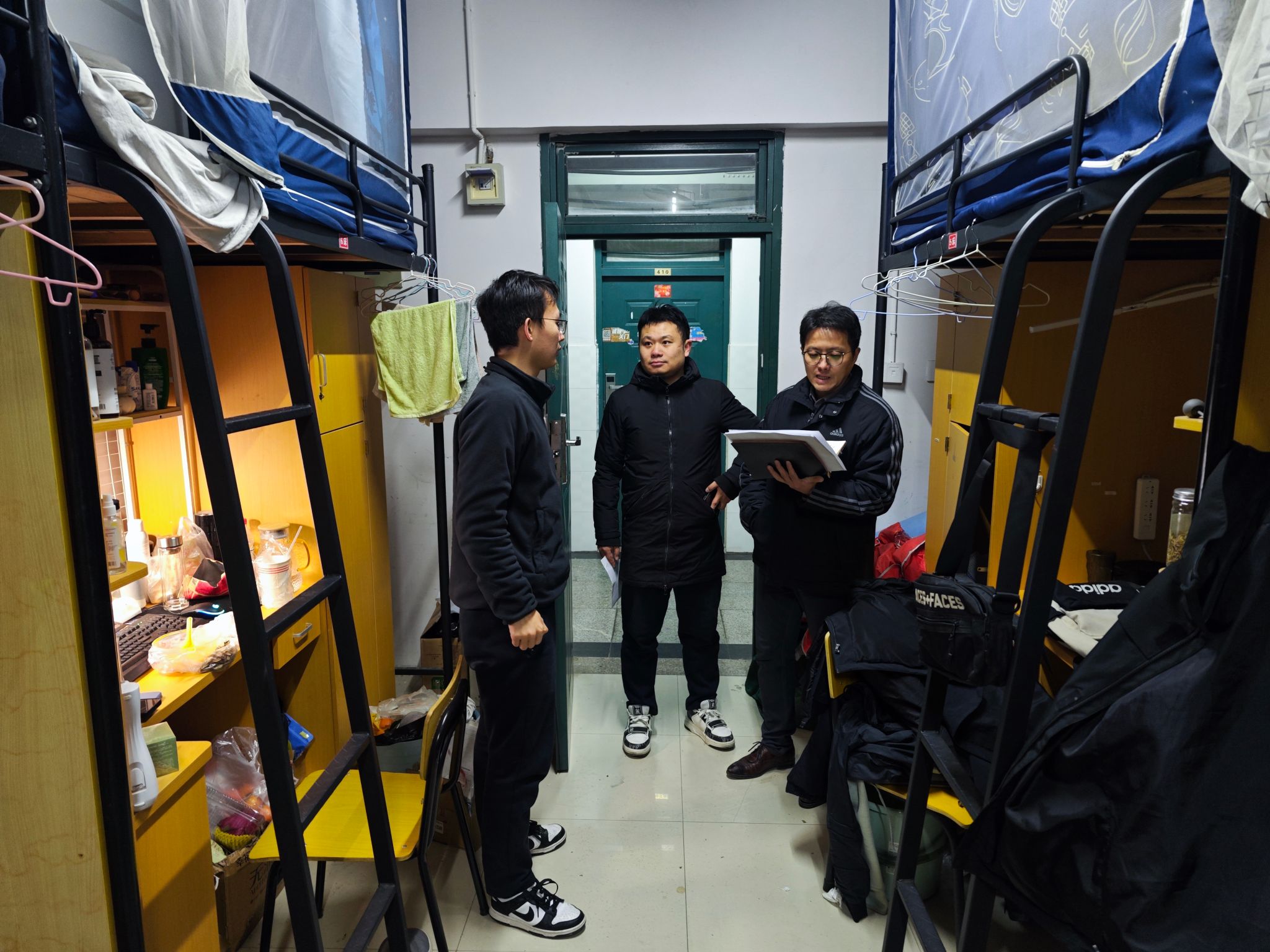 “这几天气温很低,大家要多穿点”“道路结冰出行要注意安全”“宿舍、实验室用电要规范”……1月23日晚,学院领导和部分辅导员一起深入员工宿舍,走访看望寒假期间留校员工。