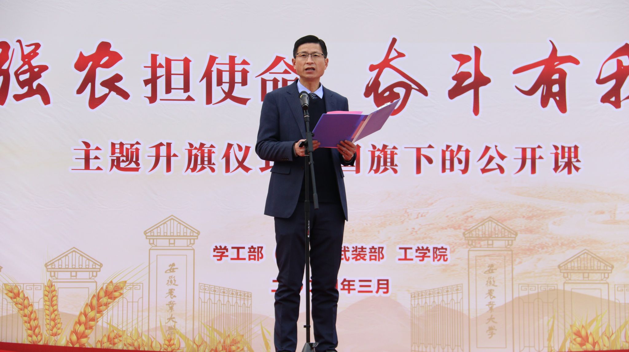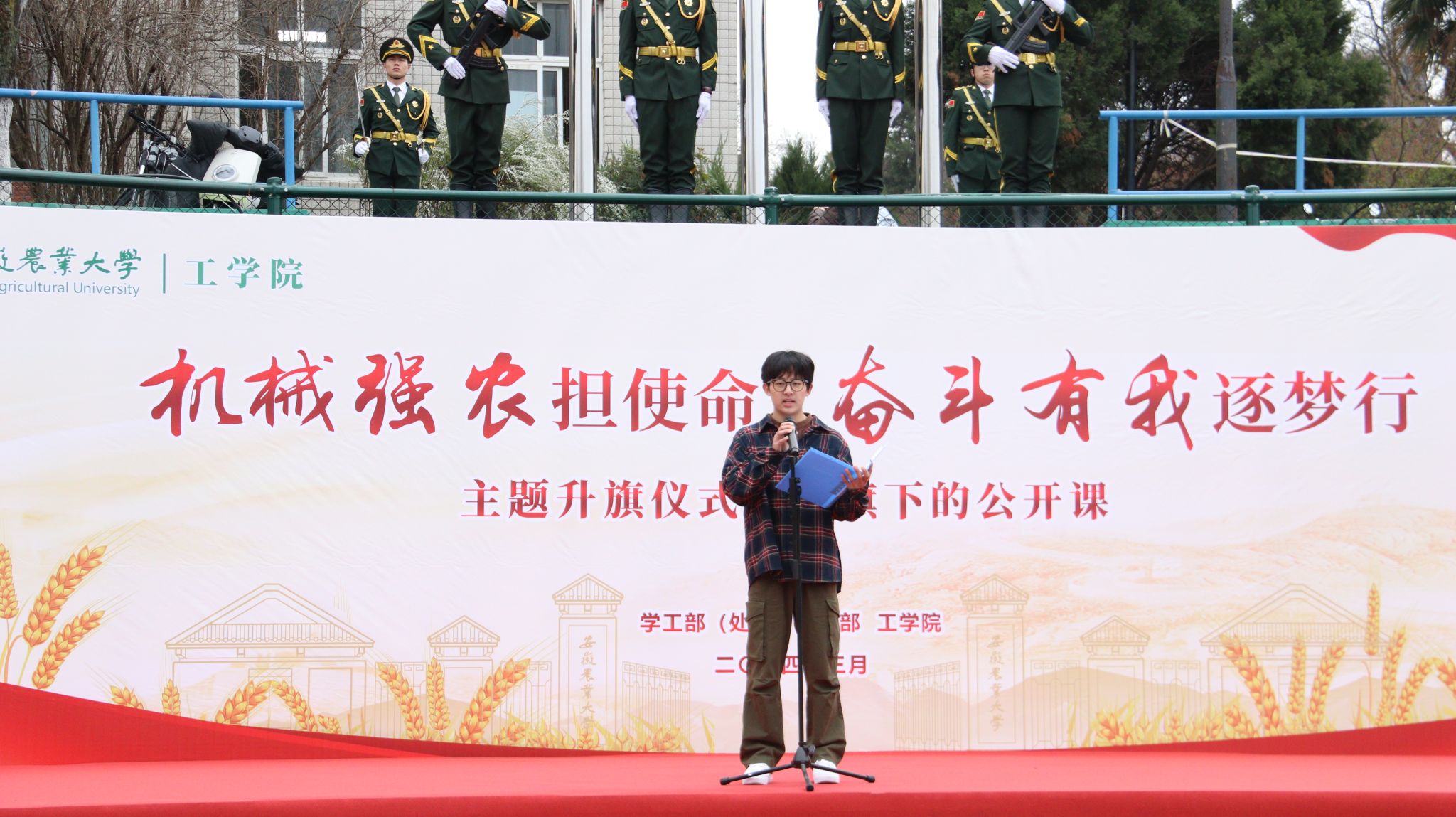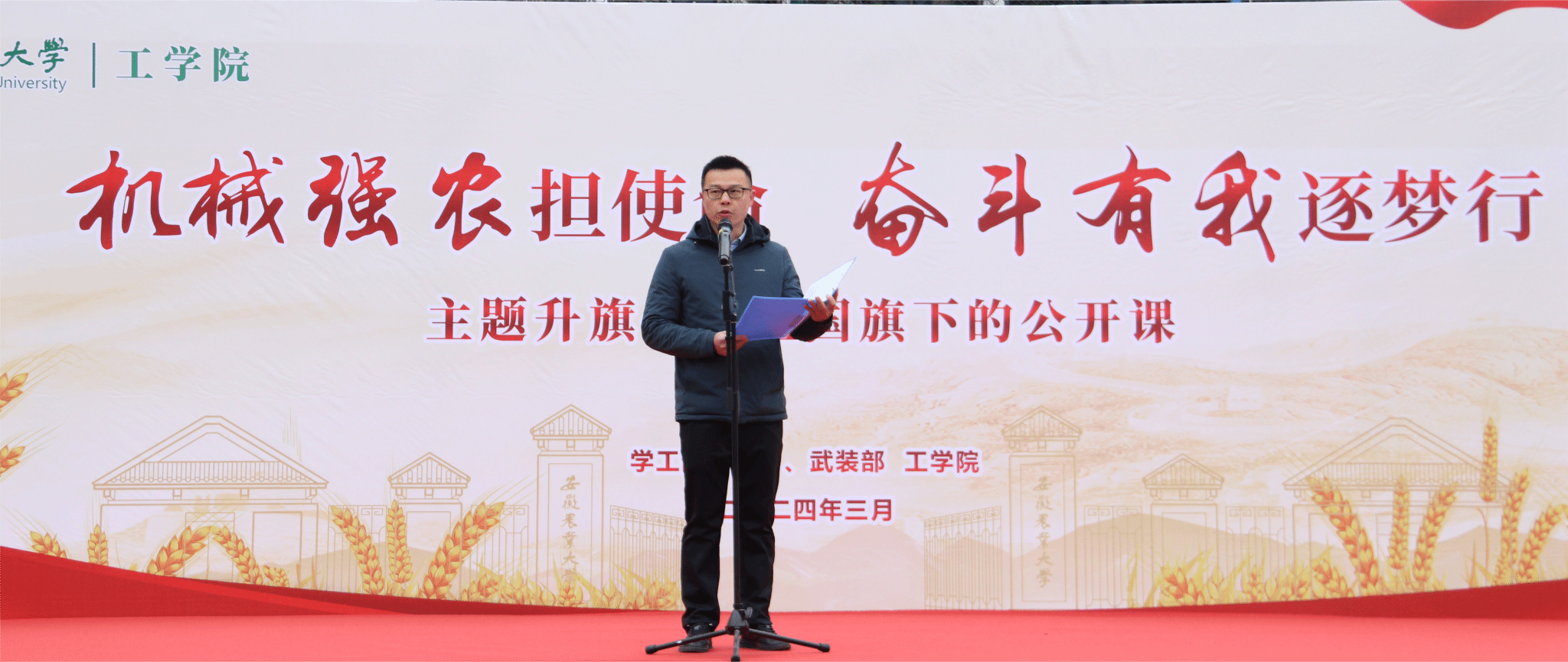 本网讯 3月18日早晨,15vip太阳集团官网在校第一运动场举行“机械强农担使命 奋斗有我逐梦行”主题升旗仪式暨国旗下的公开课。校学工部(处)、武装部副部长卢伟参加活动。公司党政领导、全体专兼职辅导员和2023级全体同学参加了此次活动,公司党委副书记张璐主持活动。