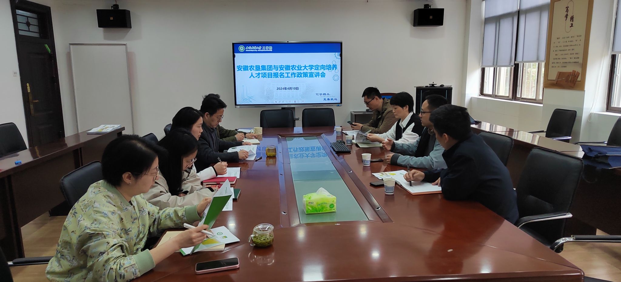 本网讯 为扎实开展我为员工办实事,帮助员工提前明晰未来职业发展,4月10日上午,学校乡村振兴公司党委书记张晓伟一行4人来院对本科“皖垦创新班”和研究生“皖垦创新人才”专项培养进行专题宣讲,学院全体专职辅导员参加会议,公司党委副书记、纪委书记张璐主持会议。