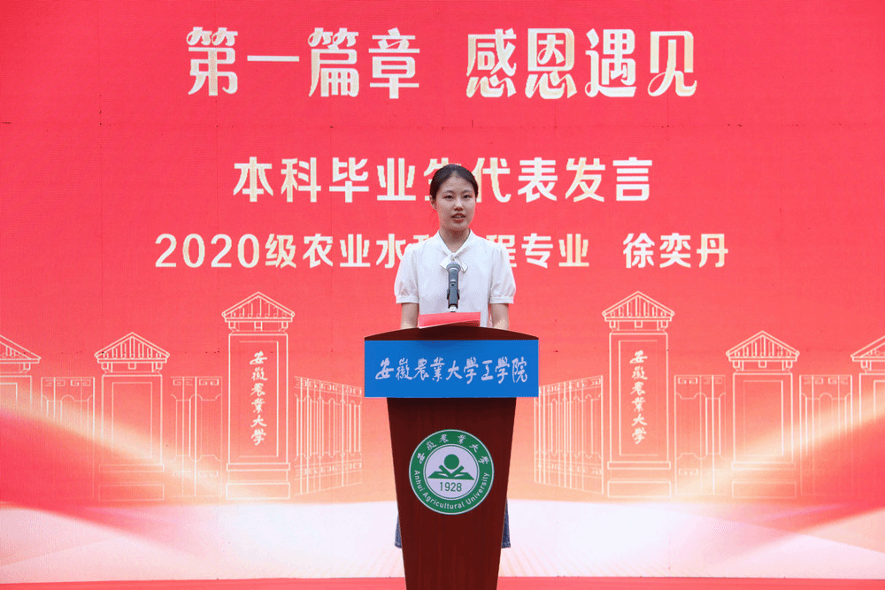 在感恩遇见篇章,本科毕业生代表2020级农业水利工程专业徐奕丹、研究生毕业生代表2022级农业工程与信息技术专业尹牛牛分别发言,毕业生张锦程、陈牧遥、王小艺、齐云飞、白天一等带来歌曲串烧,不同形式回顾了在校期间的点点滴滴,表达了对母校、老师及同学们的深深感激之情。