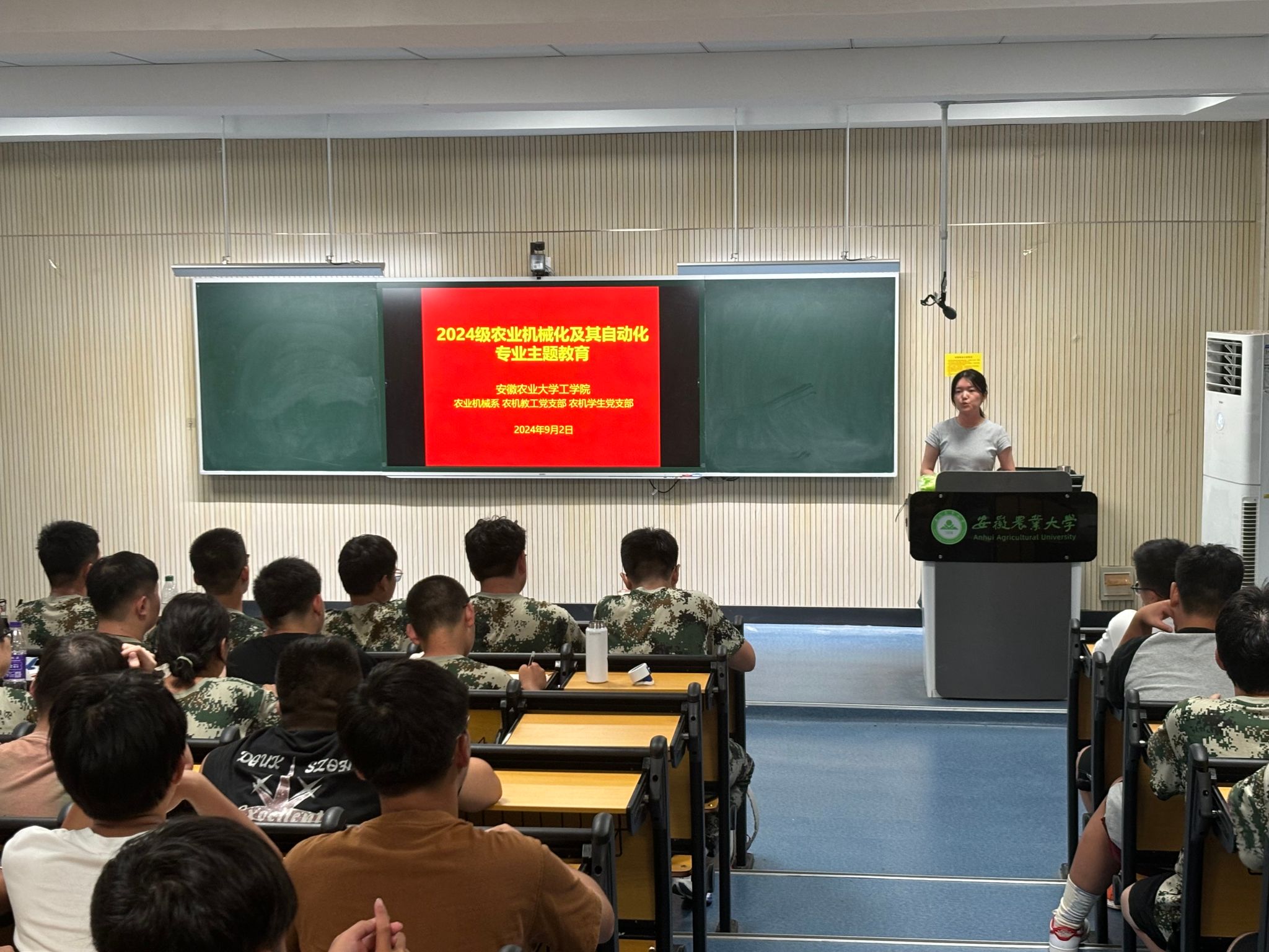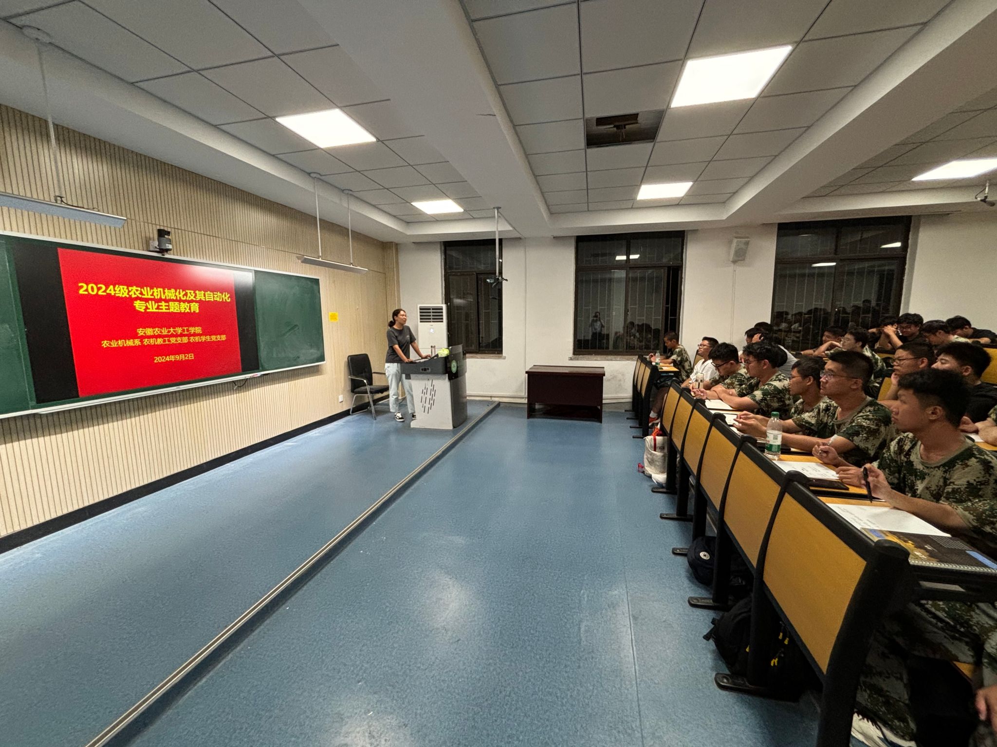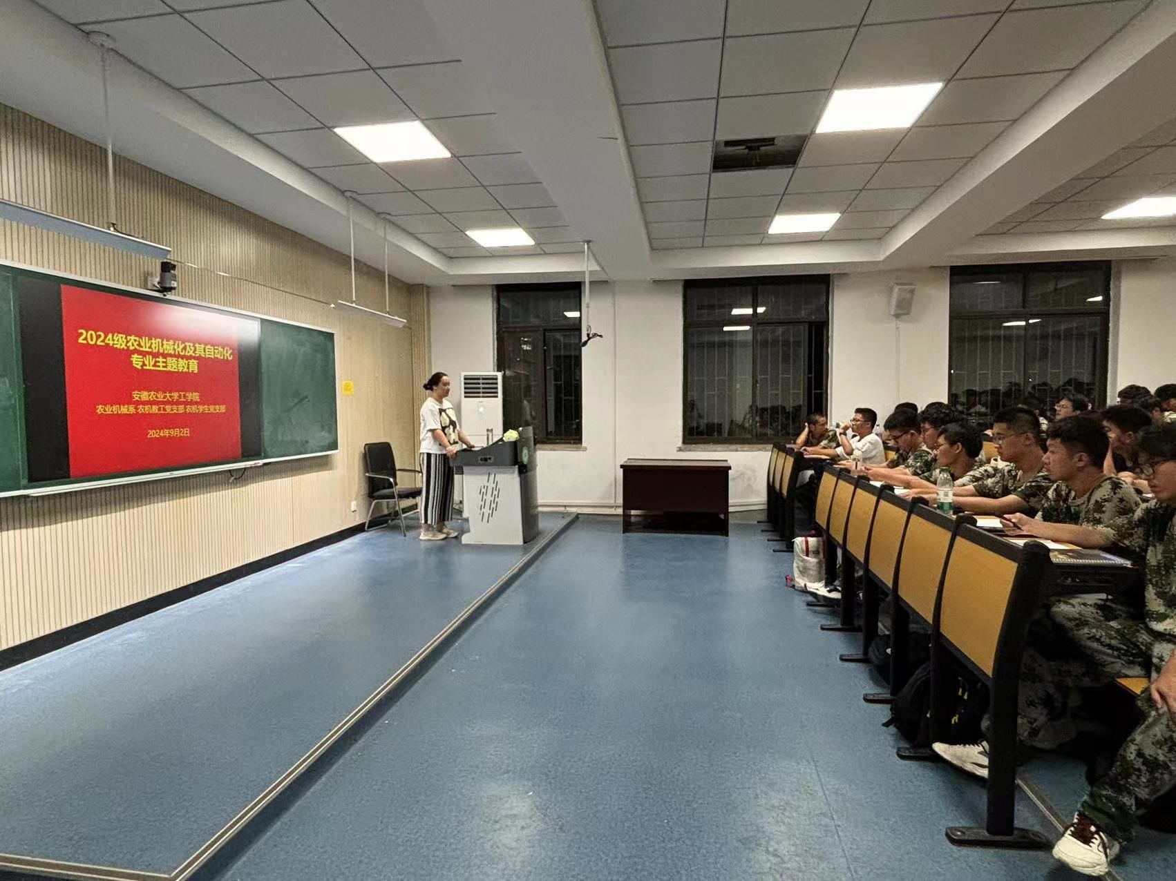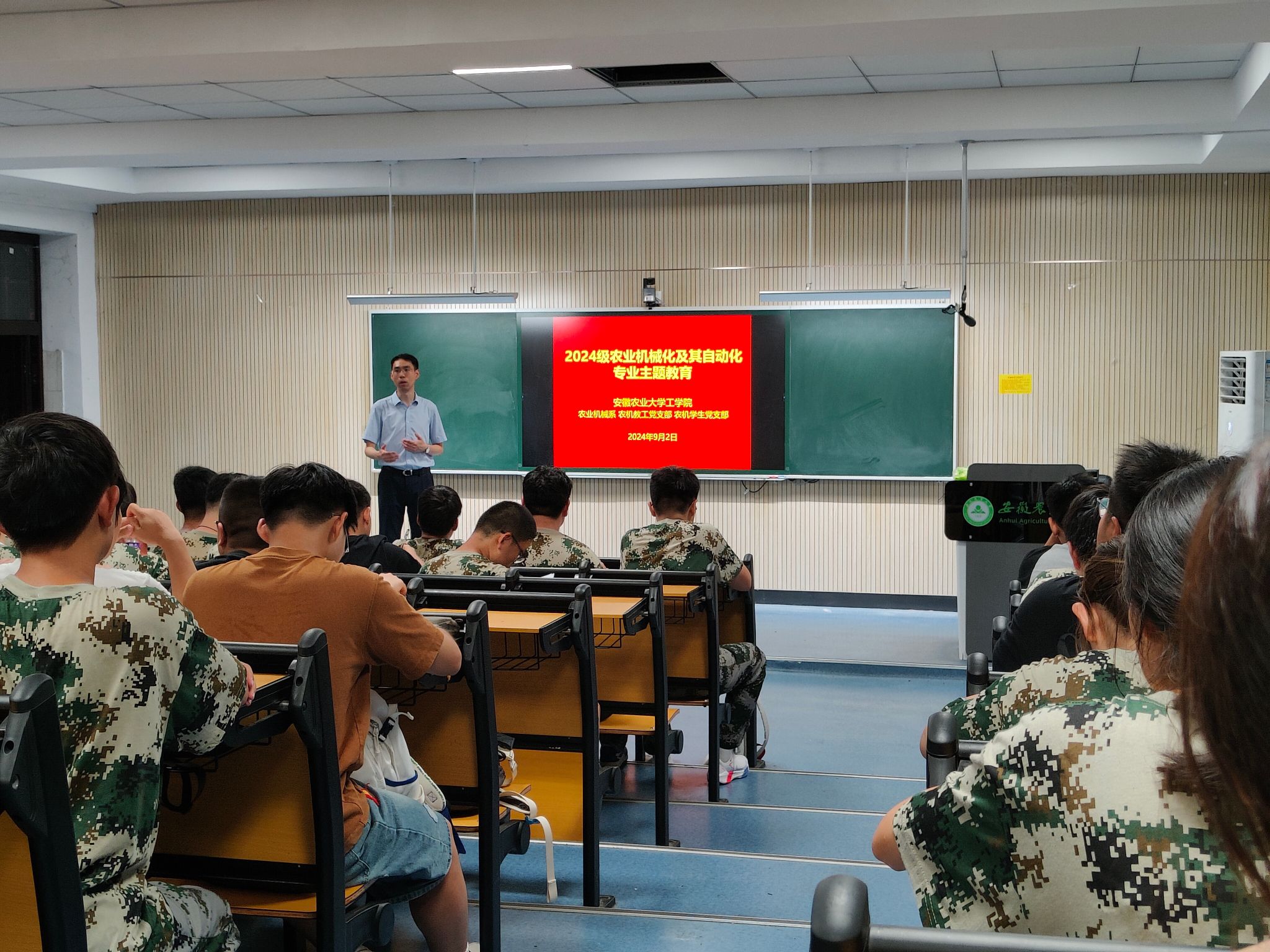 本网讯 9月2日晚,农业机械系组织24级农业机械化及其自动化专业新生开展入学教育交流会暨开学第一课,会议由农机系主任秦宽主持,农机系熊玮、王荣炎、安雪老师,辅导员孙亮亮参加。秦宽首先介绍了农机专业发展历程、人才培养方案、升学就业方向、专业特色、团队力量等员工所关心的问题,随后熊玮等三位老师依次结合专业情况和自身经历与同学们进行了交流互动。