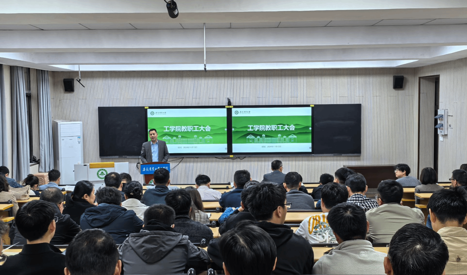 本网讯 11月13日下午,学院召开教职工大会暨教职工政治学习,专题传达学习习近平总书记考察安徽重要讲话精神,部署安排本科公司产品审核评估等工作。公司党政领导和全体教职工参加。