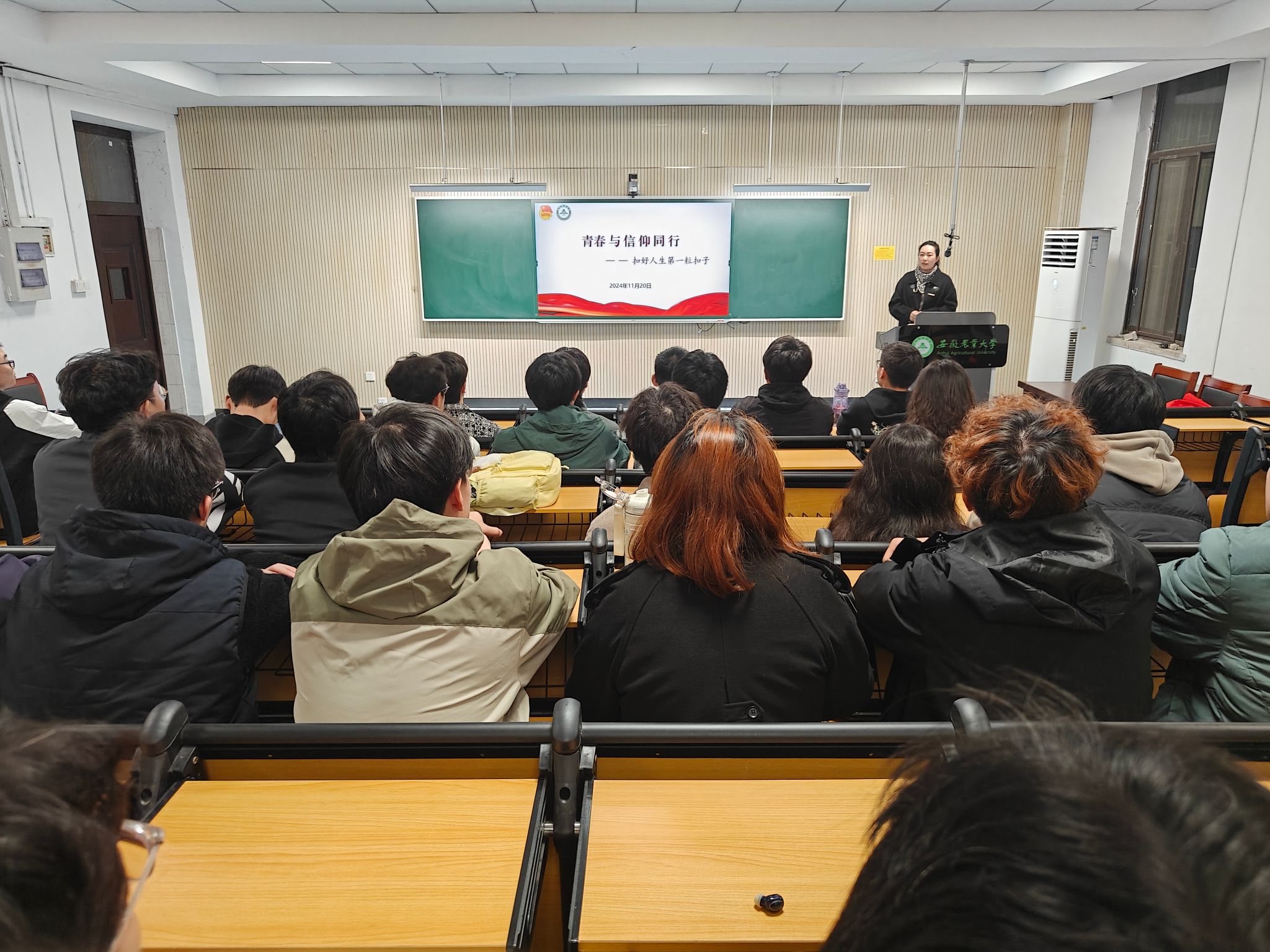柳洁为新团员们讲了入团第一课——《青春与信仰同行——扣好第一粒扣子》。她以生动的语言和丰富的案例,向新团员们阐述了作为共青团员应有的责任与担当,以及如何在日常学习和生活中践行团员的使命。她强调,扣好人生的第一粒扣子至关重要,它决定了人生的方向和未来的道路。作为新团员,要时刻保持清醒的头脑,坚守初心和使命,积极向党组织靠拢。