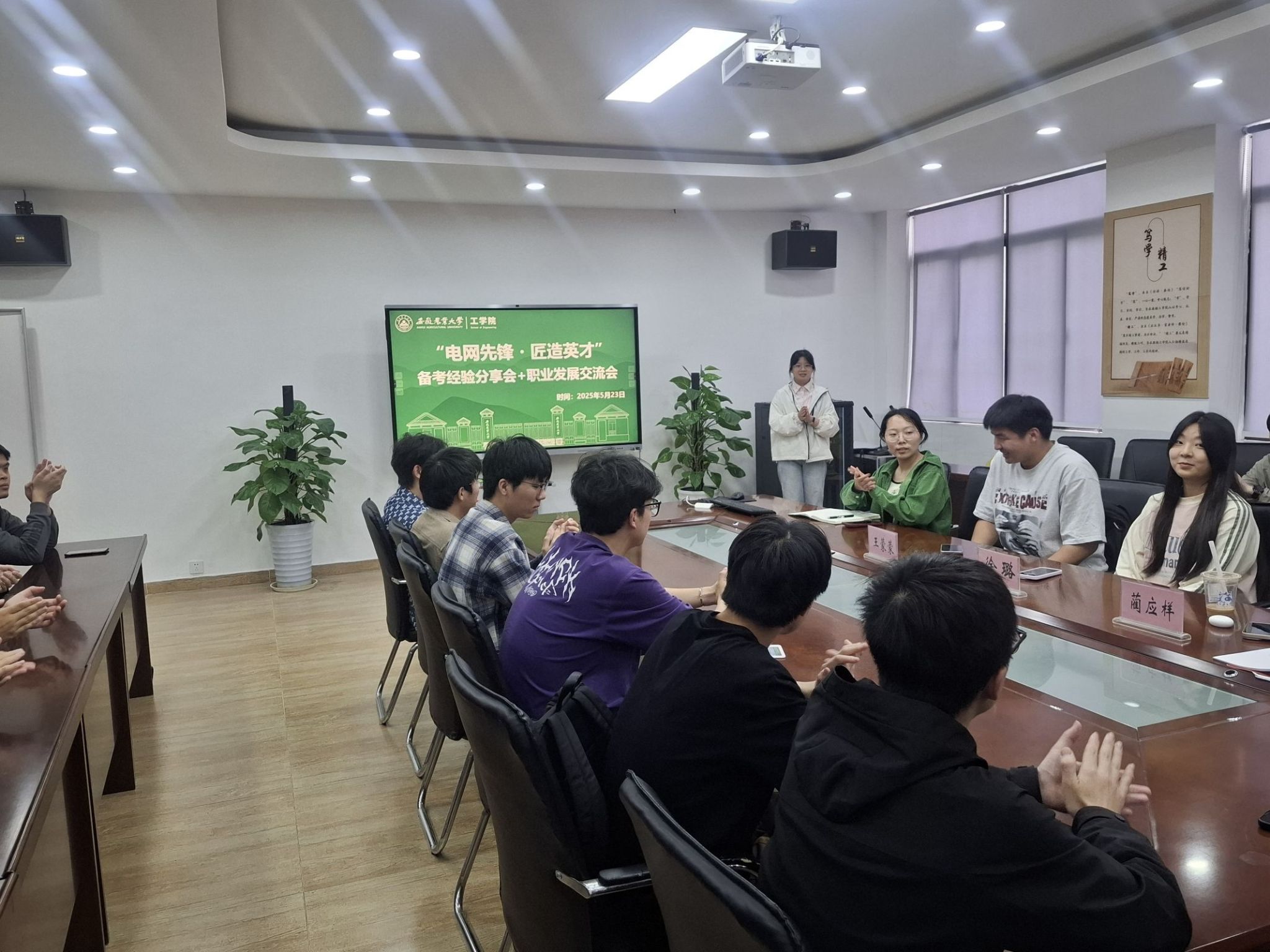 会上,考取国家电网的徐璐和王蒙蒙详细介绍了国家电网的招聘流程、网申流程、笔试内容、复试要点,强调“吃透教材、善用真题、分模块突破”的复习逻辑,重点夯实电路理论、电力系统分析等核心课程基础,并建议大家要充分利用网络资源、辅导教材和模拟题,坚定信心,遇到困难积极调整心态。考取南方电网的蔺应祥分享了报考南方电网的注意事项,传授了地域选择、报考要点、考试大纲、面试技能准备等实战技巧,提醒备考同学要科学规划复习周期,关注政策动态,制定合理的复习计划,提升综合竞争力。