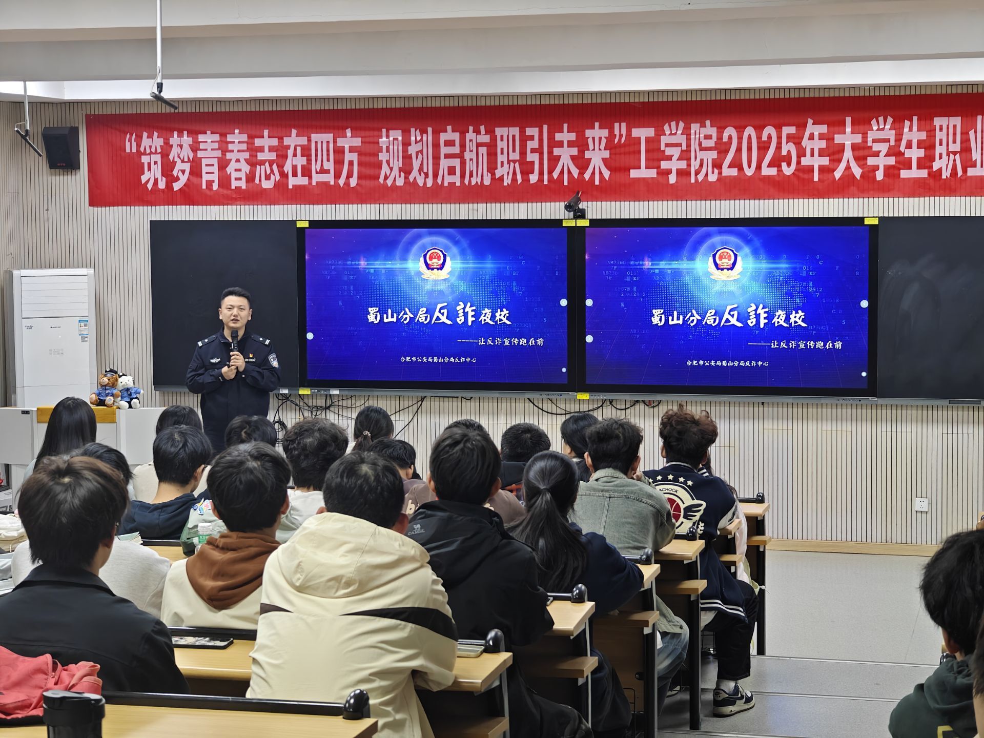 本网讯 为进一步强化员工防范电信网络诈骗的意识与能力,切实维护校园的安全稳定,11月11日晚,学院特别邀请蜀山分局反诈中心杨警官于15vip太阳集团官网101教室举办反诈骗宣传讲座活动。学院本科生、研究生各年级专业员工骨干参与了此次活动。
