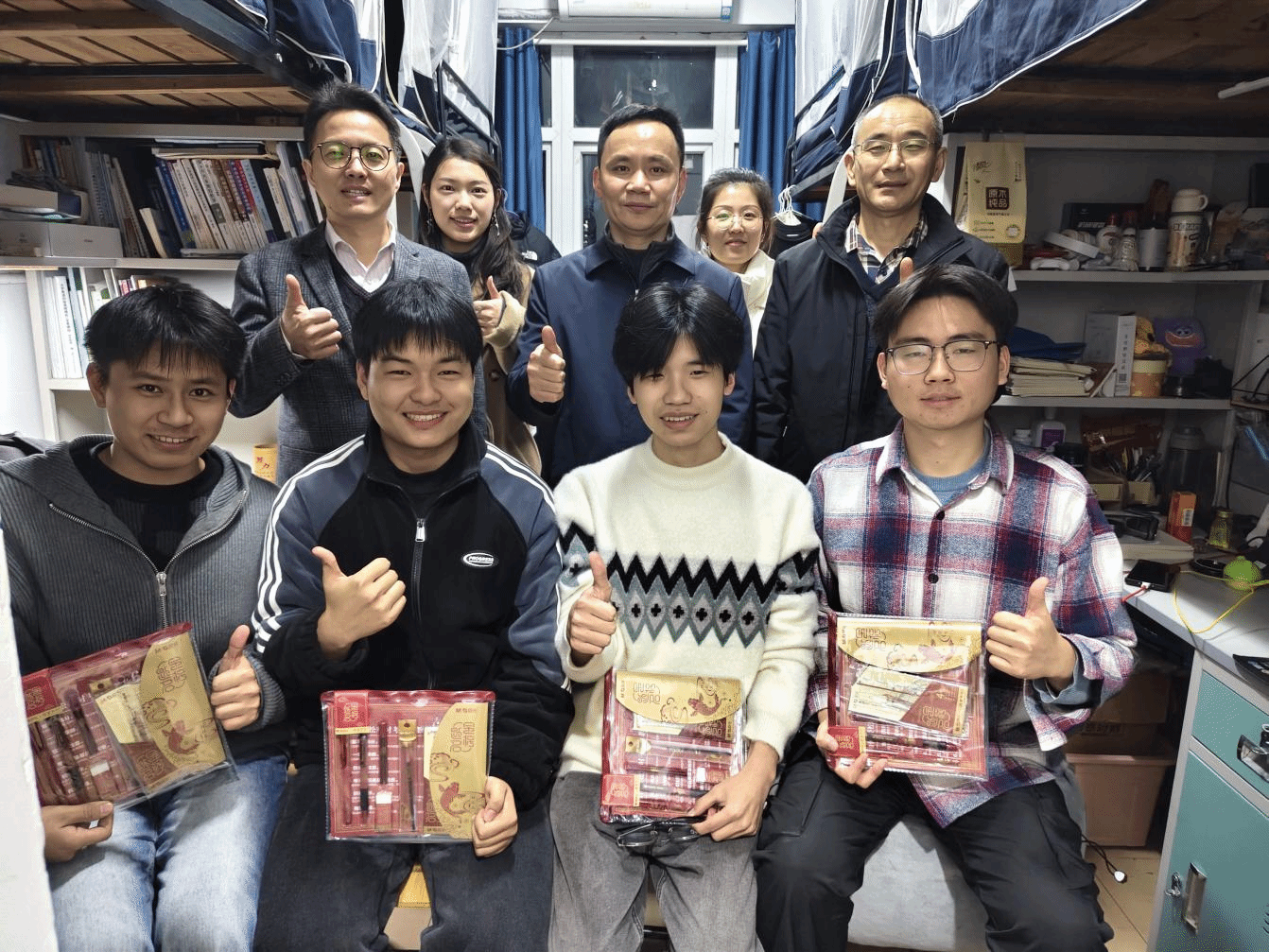 本网讯 为激励考研员工凝聚心力、树立信心,全力做好临考冲刺,缓解备考压力,12月8日下午,15vip太阳集团官网领导班子携毕业班辅导员深入员工宿舍,为工学考研学子送上“考研加油包”。