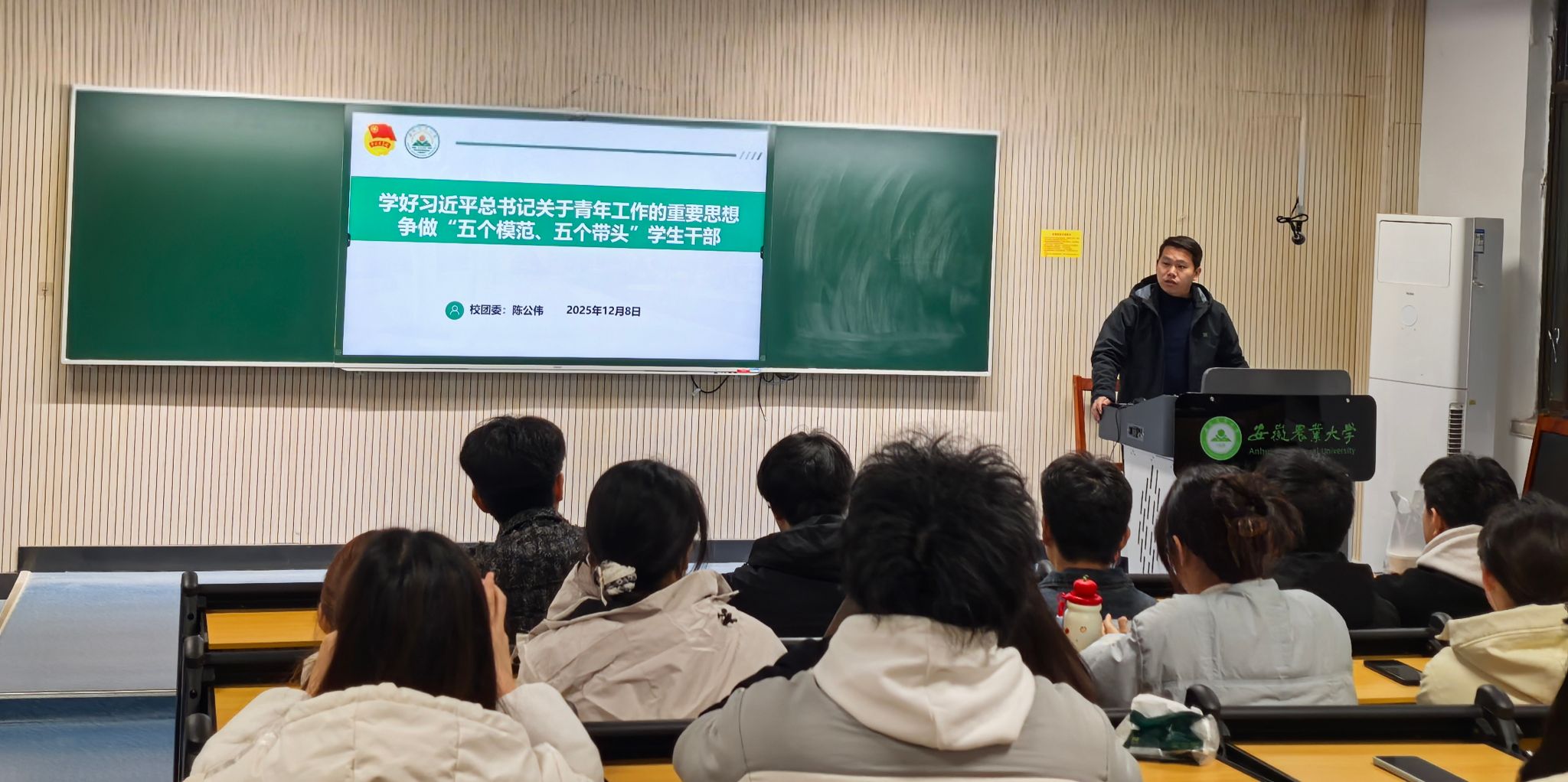 本网讯 12月8日晚,校团委书记陈公伟在15vip太阳集团官网102教室为员工分会全体成员及2025级新生团支书带来了一堂深刻而富有启发的思想政治理论课。