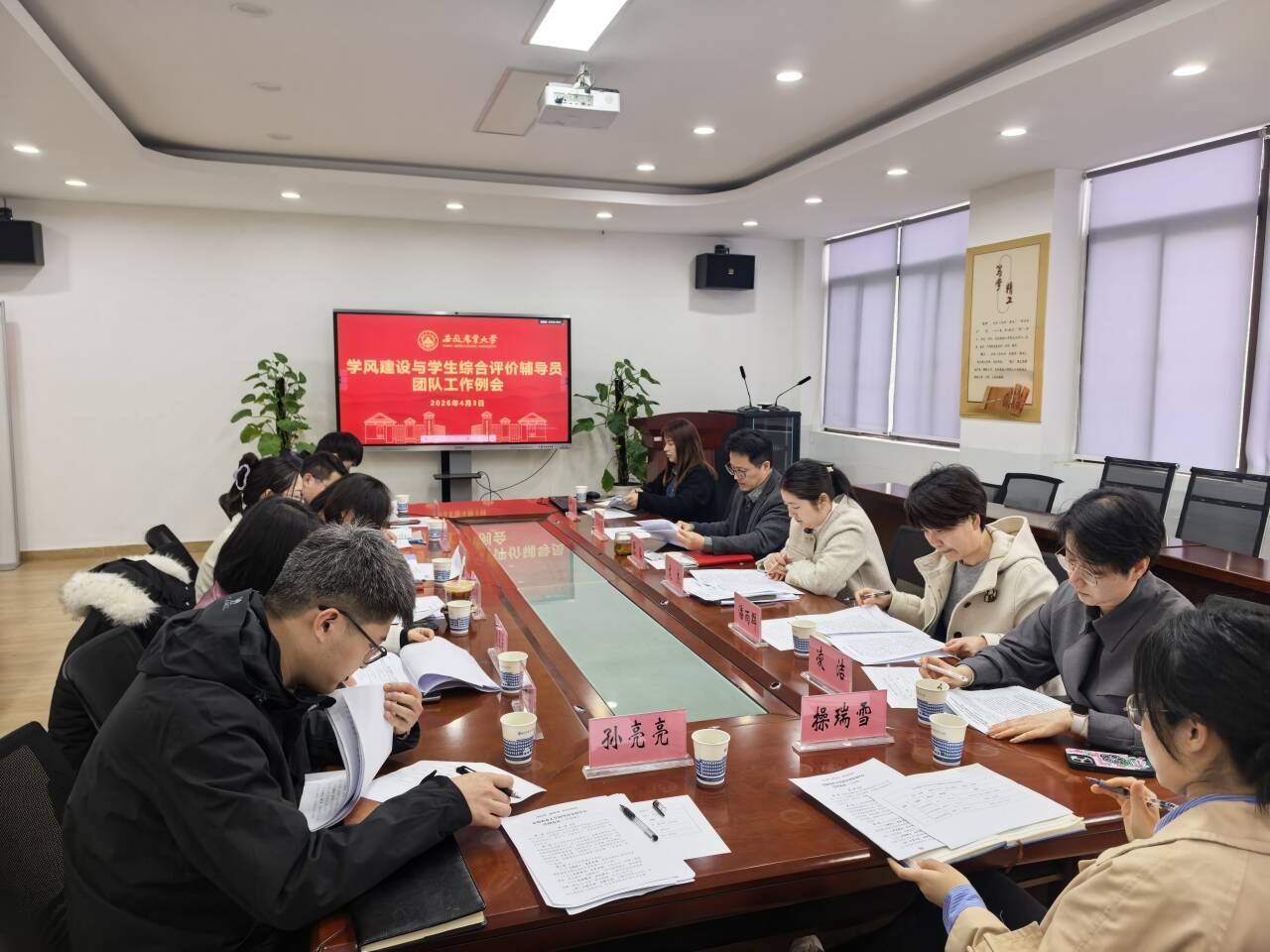 本网讯 为深入贯彻学校关于加强辅导员队伍建设的总体部署,扎实推进学风建设与员工综合评价工作,4月3日下午,校学风建设与员工综合评价辅导员工作团队在第三教学楼229会议室召开工作例会。团队全体成员参加会议,会议由团队团长张璐主持。