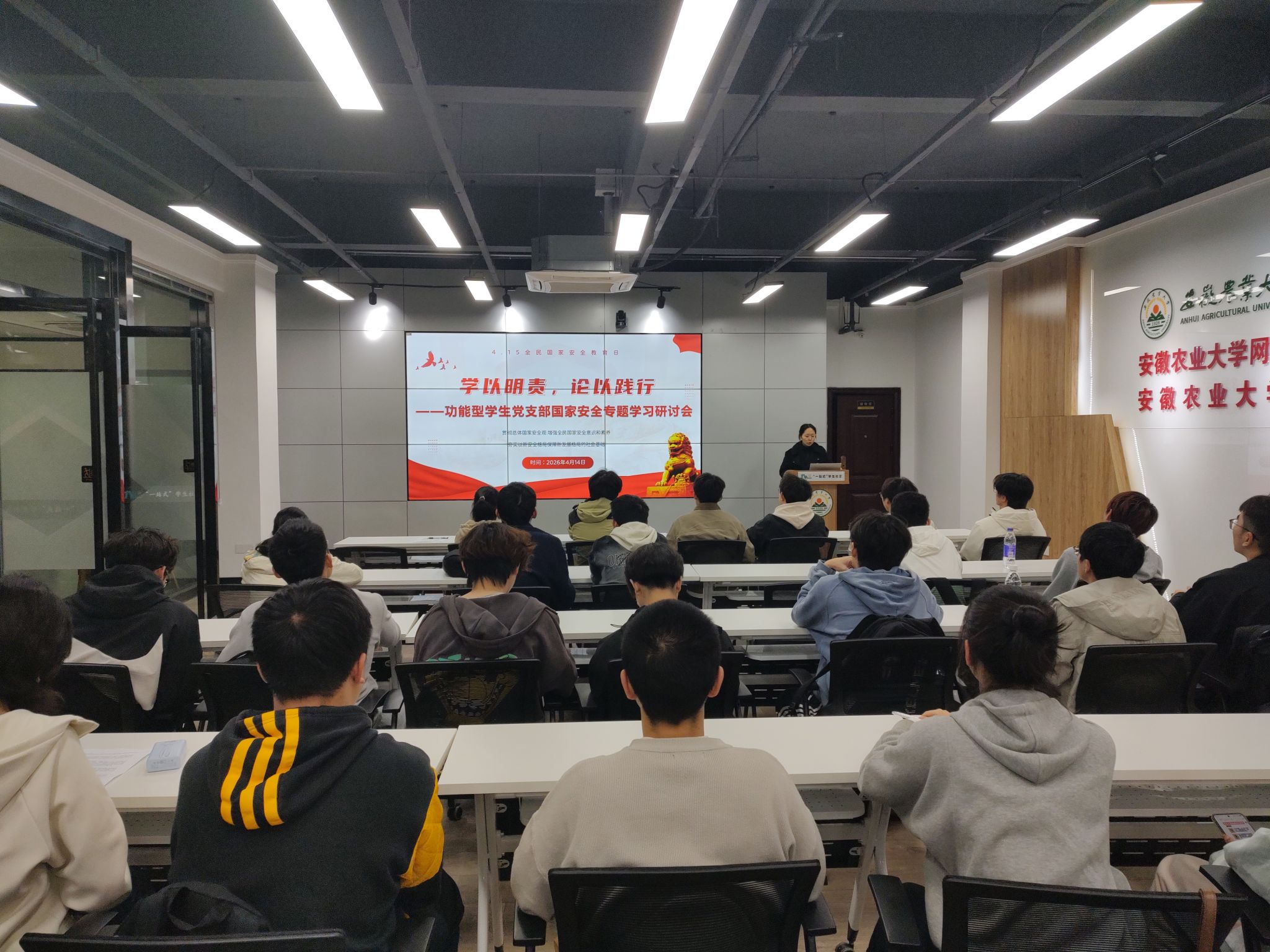 论一次国家安全专题研讨会。4月14日晚,“学以明责,论以践行”国家安全专题学习研讨会在“一站式”员工社区(南区)举行。支部成员围绕政治安全、网络安全、文化安全等重点领域,结合员工社区实际,踊跃发言、深入交流。大家一致认为,作为新时代青年,要时刻绷紧国家安全之弦,将维护国家安全的职责内化于心、外化于行。同学们在“论”中碰撞思想、凝聚共识,进一步强化了党员的责任担当。