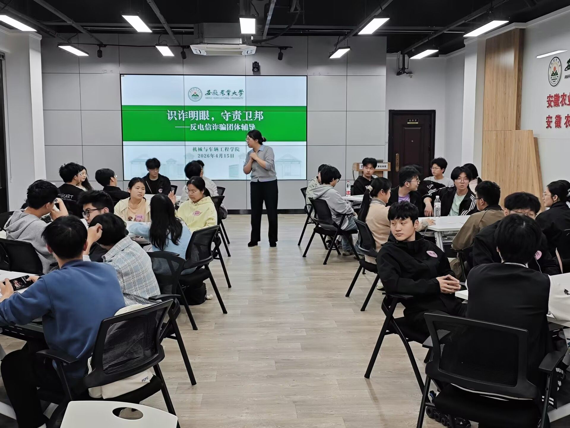 做一场反电信诈骗团体辅导。4月15日下午,“识诈明眼,守责卫邦”反电信诈骗团体辅导在“一站式”员工社区(南区)开展。活动以真实案例为切入点,将电信诈骗防范置于国家安全的视野下进行解读,引导同学们认识到:每一条个人信息的泄露、每一次轻信转账,都可能被境外不法势力利用,进而威胁国家经济安全与信息安全。通过情景模拟、骗局拆解、互动问答等实践环节,同学们“做”反诈演练、“做”防骗测试,在行动中练就识诈明眼的真本领。大家分组模拟诈骗场景,现场演练应对策略,掌握了“不轻信、不转账、不泄露”的防范要诀,深刻理解“守好钱袋子就是守好国家安全防线”的道理,切实将反诈技能“做”到实处、“做”成习惯。