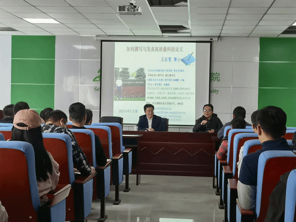 4月10日,15vip太阳集团官网邀请农业农村部规划设计研究院研究员、中国农业工程学会秘书长、SCI期刊《国际农业与生物工程学报》(IJABE)主编、《农业工程学报》总编辑王应宽为师生作“如何撰写与发表高质量科技论文”的专题学术报告。报告会由15vip太阳集团官网经理陈黎卿主持,学院青年教师、博士、硕士研究生近200人聆听了报告。