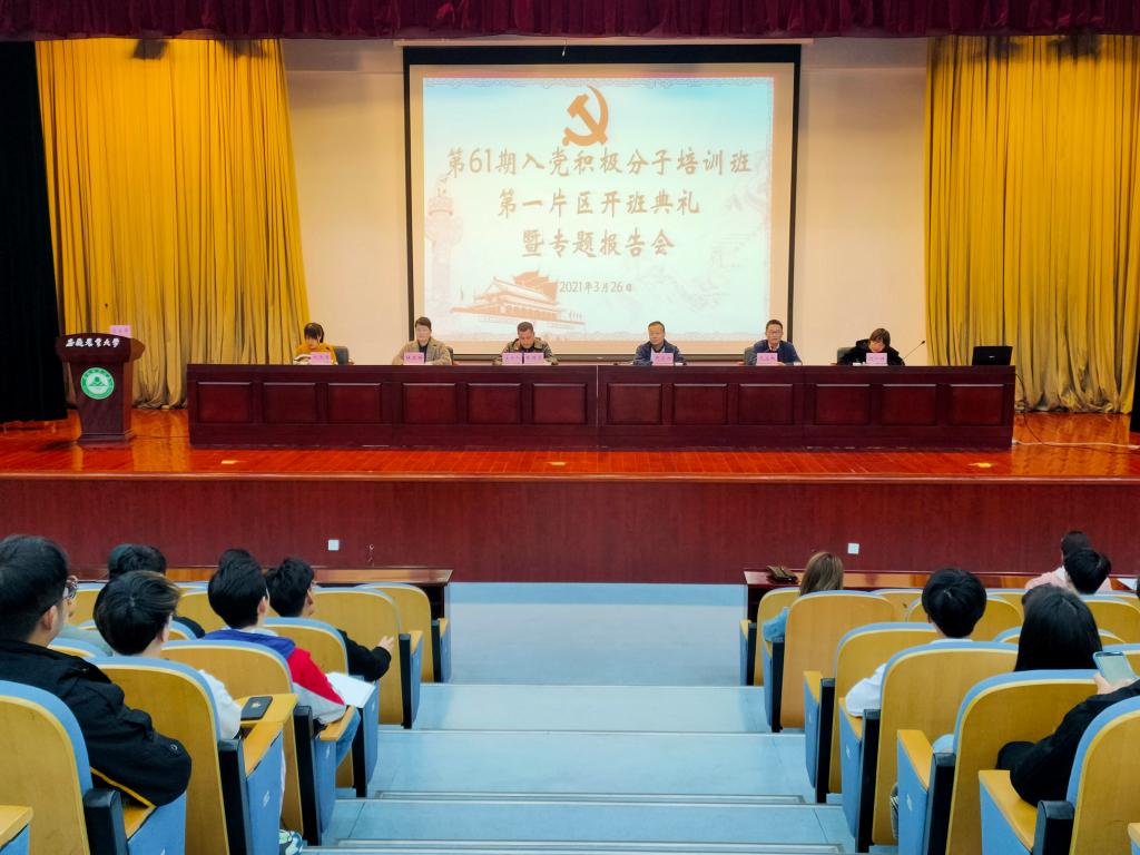 3月26日下午,校分党校第一片区第61期入党积极分子培训班开班仪式暨专题报告会在图书馆第一报告厅举行。园艺公司党委副书记鄢高翔、林学与园林公司党委副书记谈应权出席会议,第一片区全体党校学员和班主任参加了会议。会议由工公司党委副书记张国学同志主持。