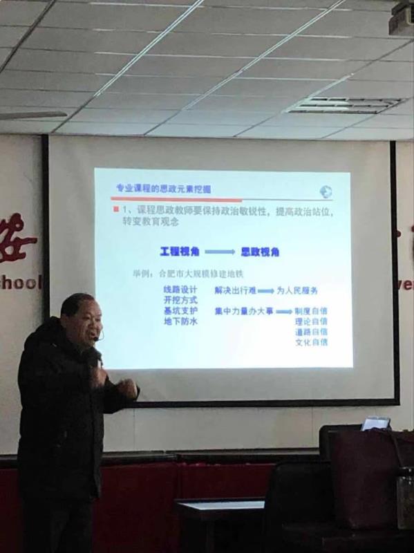 3月24日下午,在工公司党史学习教育动员大会上,建筑工程教工党支部书记、系主任杨智良老师就以讲授“桥梁工程”为例,从隋代的赵州桥、到近代的泸定桥、再到现代的港珠澳大桥,引入《飞夺泸定桥的故事》,进行现场课程思政教学示范,同时他还分享了党史故事引进课堂教学,推进课程思政建设的思考和体会。