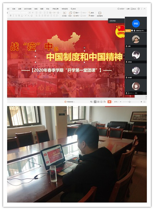 凝聚赤子之心,奏响青春华章。在各团支部积极进行理论知识学习的同时,学院也组织了包括员工会在内的员工组织进行“赤子心,共战疫”的主题团课学习。通过主题团课的途径,使得同学更加明白在全国抗击疫情的局面下,不管是奋战在一线的医护人员,还是在幕后保障物资运输畅通的“摆渡人”,从火神山、雷神山医院建设中供水、供电等单位组建“青年突击队”奔赴现场,再到招募志愿者开展医疗支持、办公协助、社区服务,新时代的青年人已经逐渐扛起了时代的大任,展现了新时代的青年人在困难面前的责任与担当。