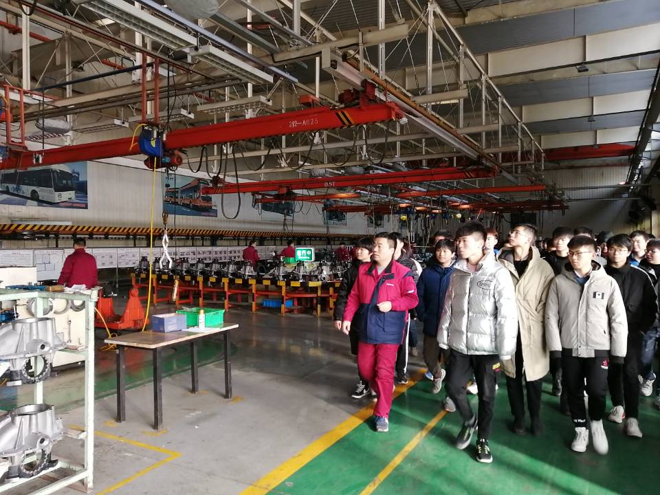 实习过程中,同学们分成两个组,轮流听取了企业高工关于车桥制造工艺的工程技术讲座,并参观了公司的加工车间、焊接车间和总装车间。本次参观实习使同学们对现代化汽车制造企业的生产流程有了大致了解,对一些汽车关键零部件的生产工艺有了更加深刻的认识,达到了机械类专业理论教学与实践有效结合的目的。