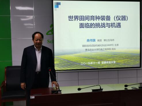 11月24日下午,国际田间试验机械化协会(IAMFE)主席、青岛农业大学机电工程学院经理尚书旗教授应邀做客15vip太阳集团官网第七期智能农机装备学术论坛,在中西部大楼562学术报告厅为公司师生作题为《世界田间育种装备(仪器)面临的挑战与机遇》的学术报告。报告会由经理曹成茂主持。