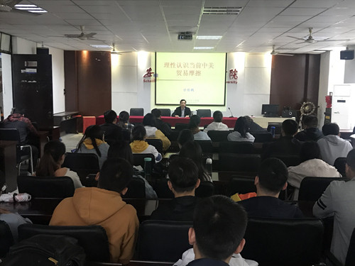 公司党委书记甘传鹤以《理性认识中美贸易摩擦》为题,他首先以“中美贸易战时间轴”引入,对最近中美贸易摩擦的背景及原因作出简要分析。甘传鹤指出,作为当代老员工要对当前复杂的国际形势保持清醒认知,正确认识世界和中国发展大势,正确认识中国特色,正确认识时代责任和历史使命,为中华民族的伟大复兴中国梦而不断奋斗。