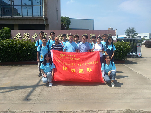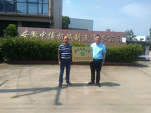 在安徽中博机械制造有限公司,孙福主持召开了“产学研用”座谈会,并同公司董事长姚明一道为学校“产学研用实践基地”揭牌。随后,“三下乡”师生还参观了企业生产线,详细了解了企业生产经营情况。