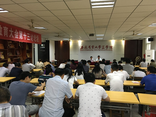 会后,以系为单位组织教职工围绕教育大会相关内容进行学习讨论。