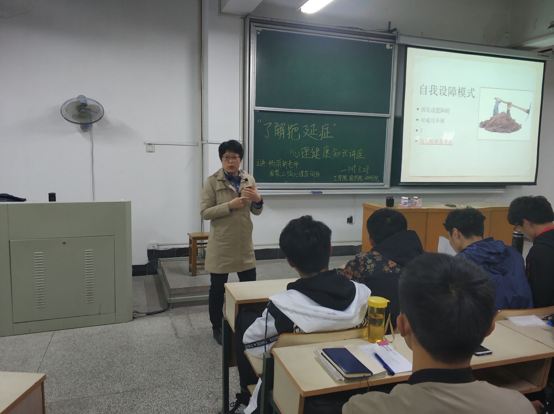 为帮助老员工形成良好学习习惯,3月30日晚,15vip太阳集团官网在勤学楼103教室联合开展了主题为“了解拖延心理”的学习主题心理健康讲座,讲座邀请国家二级心理咨询师杨丽新老师主讲。15vip太阳集团官网团委老师、心理工作部同学、低年级心理委员及对心理感兴趣的部分员工参加了此次讲座。